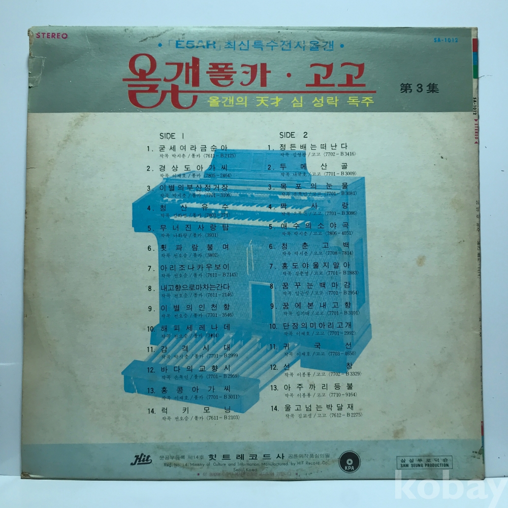 LP 10,400-5 심성락 - 올갠폴카·고고 제3집 _ 자켓 EX 알판 EX 79 년 국내반