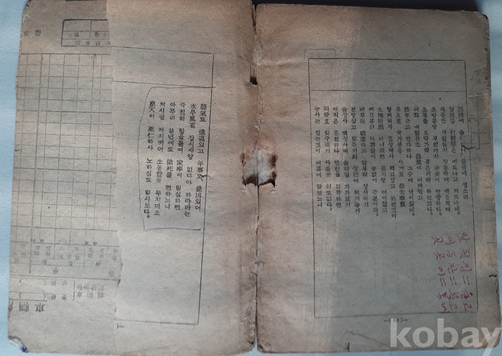 낙장(간기부분), 낙서 있음, 표지 변색 오염, 책등훼손, 출판시 제본 제책 불량, 간기전 마지막 페이지, 세로로 찧이져 낙장, 본문내용은 탈락없음, 625전쟁시기에 발행된 책으로 이면지에 인쇄한 부분도 다수 있음, 반품불가, 반품시 반품비용 구매자부담조건, 판매사이즈는 정확하지 않음