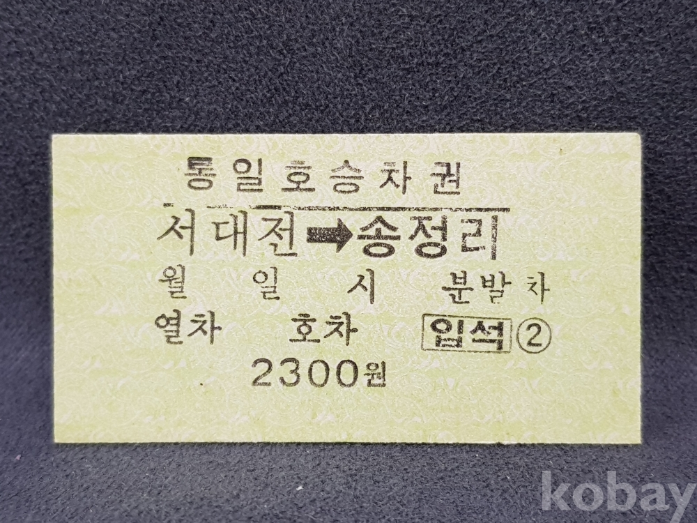 - 미사용 통일호 승차권 " 서대전 ▶ 송정리 " 2300원