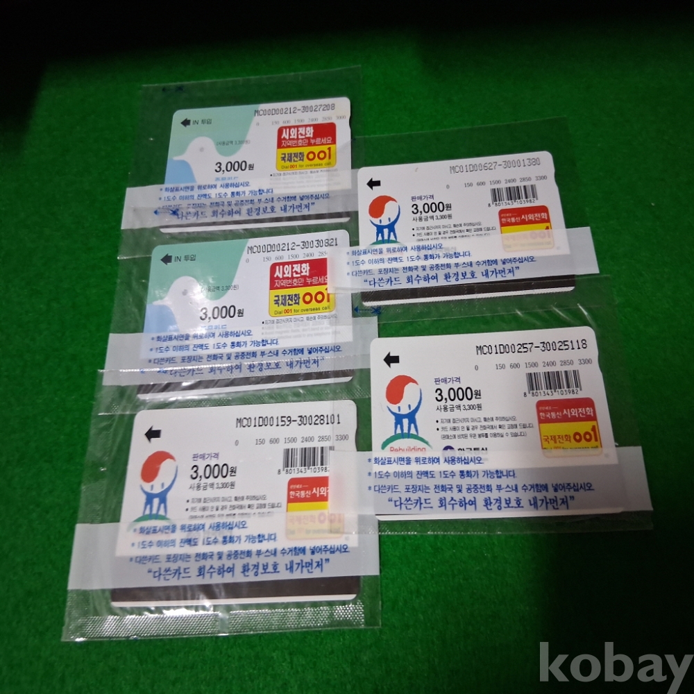 미사용 전화카드 5매 액면가15000원
