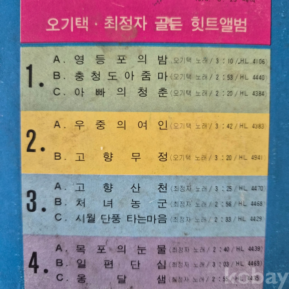 [8트랙 테이프 기획전] [오기택/최정자] 골든 힛트앨범 / 영등포의 밤 우중의 여인 고향산천 外