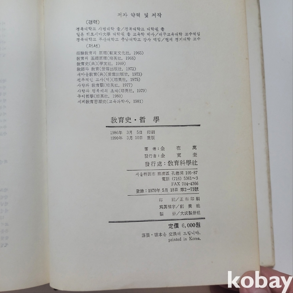 [천원경매] 교육사 철학 / 교육과학사 1990년 발행