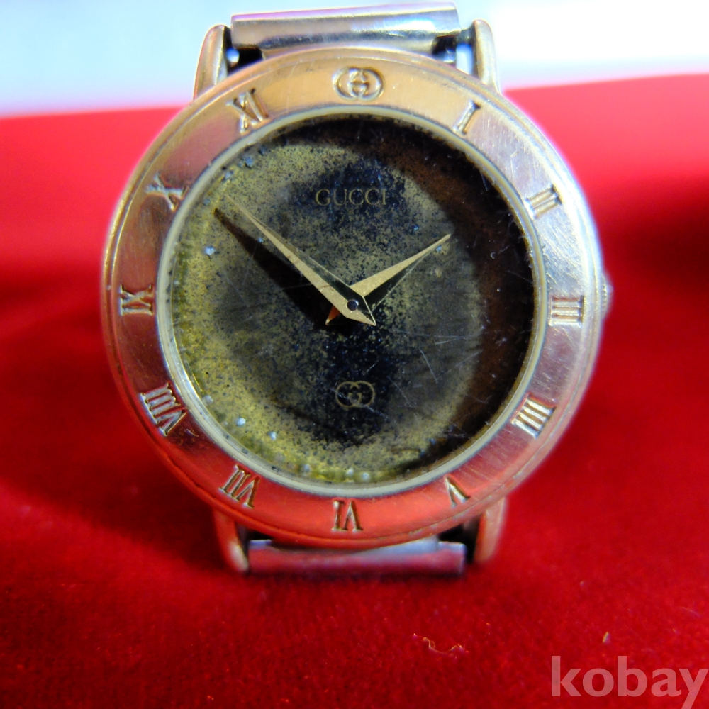외관은 문자판 많은 손상 ( 벗겨짐) 있으며 시계도 기스가 많이 있습니다. ( 시계줄은 구찌 제품이 아닙니다 )