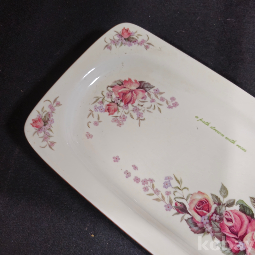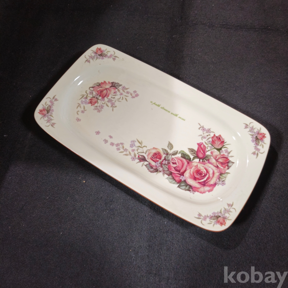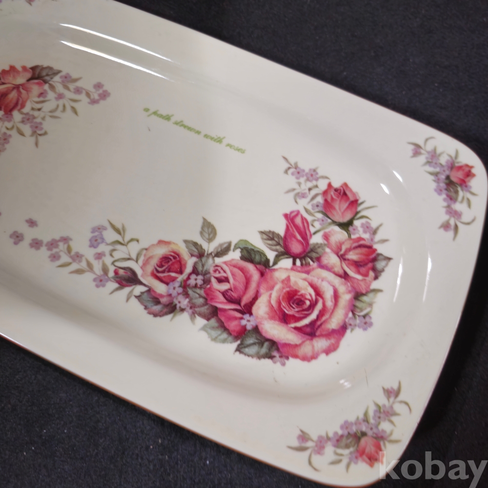 (((빈티지접시))) 오래전 유럽에서만든 장미꽃모습이 이쁜 빈티지 직사각 Gallery Masal 도자기 접시 (길이 29.5 cm)