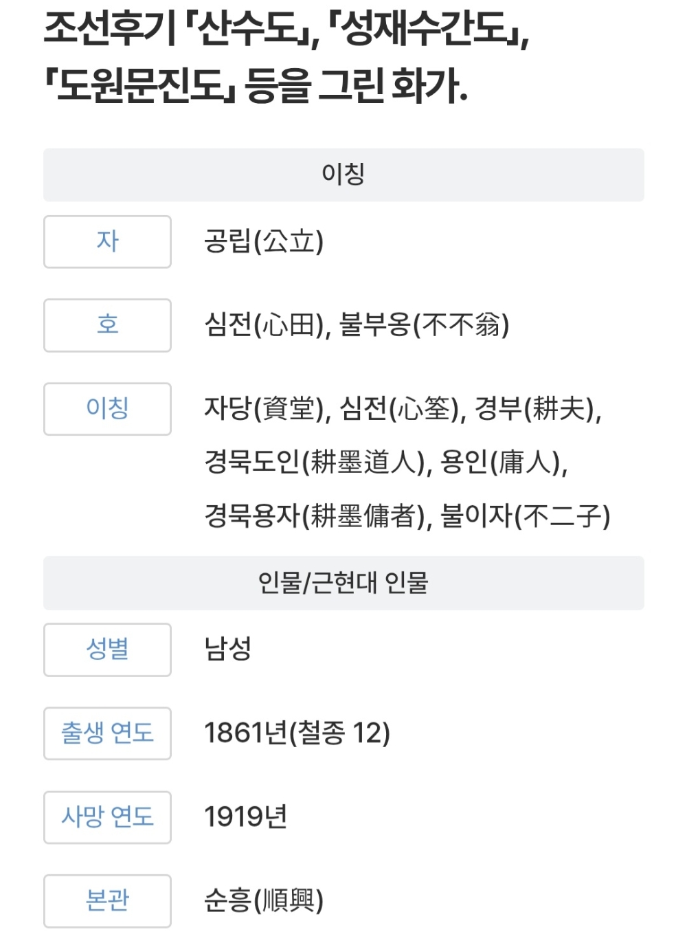 ** 심전 안중식 (心田 安中植)