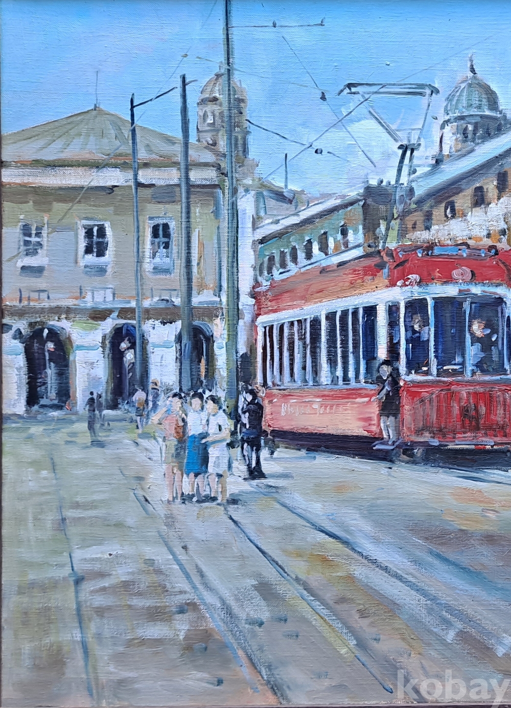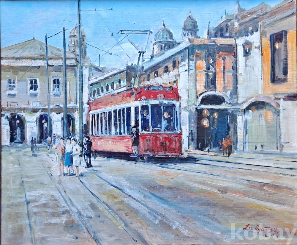여류 인기화가 이현주 선생의 '전차가 있는 거리' 2008년작 20호 캔버스에 유채