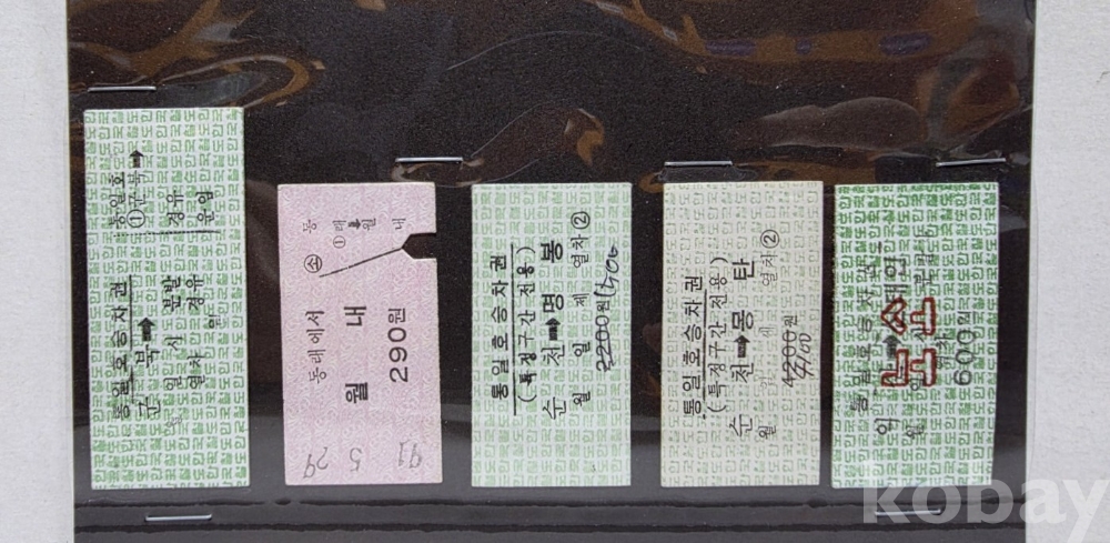 -기차, 지하철, 버스표등 다양합니다.