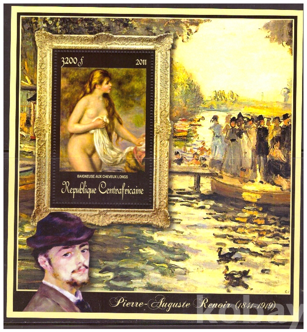 (누드명화) 중앙아프리카 2011 Auguste Renoir 긴머리의 목욕하는 여자 deluxe sheet MNH