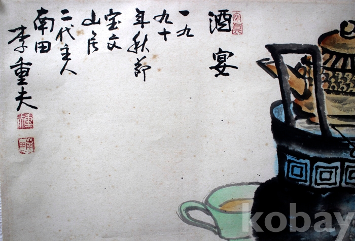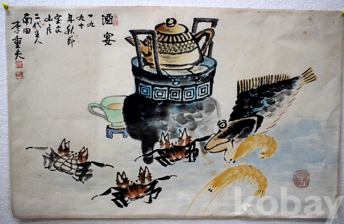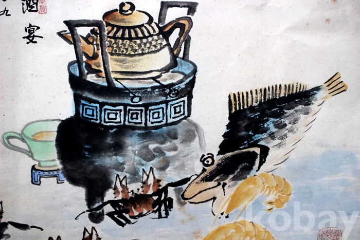 충남도전 특선작가인 南田(남전) 이중부의 작품 - 화로와 쏘가리와 새우, 게...
