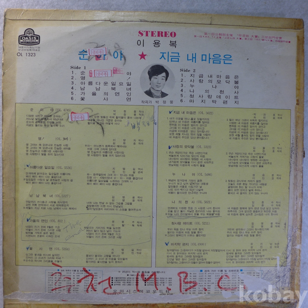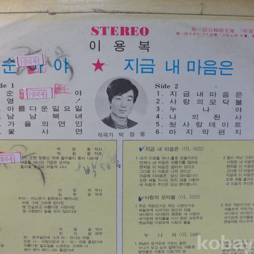 (귀한)LP음반: 이용복의"순아야","지금 내마음은"등 수록앨범