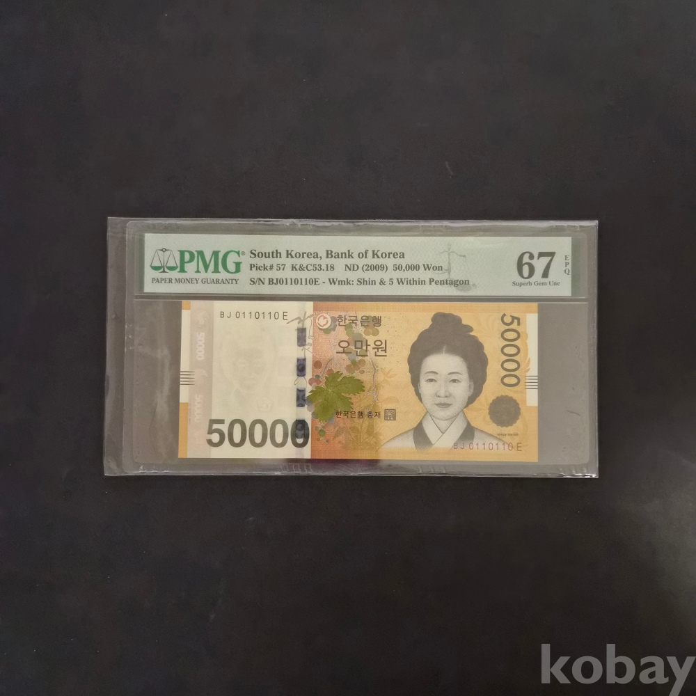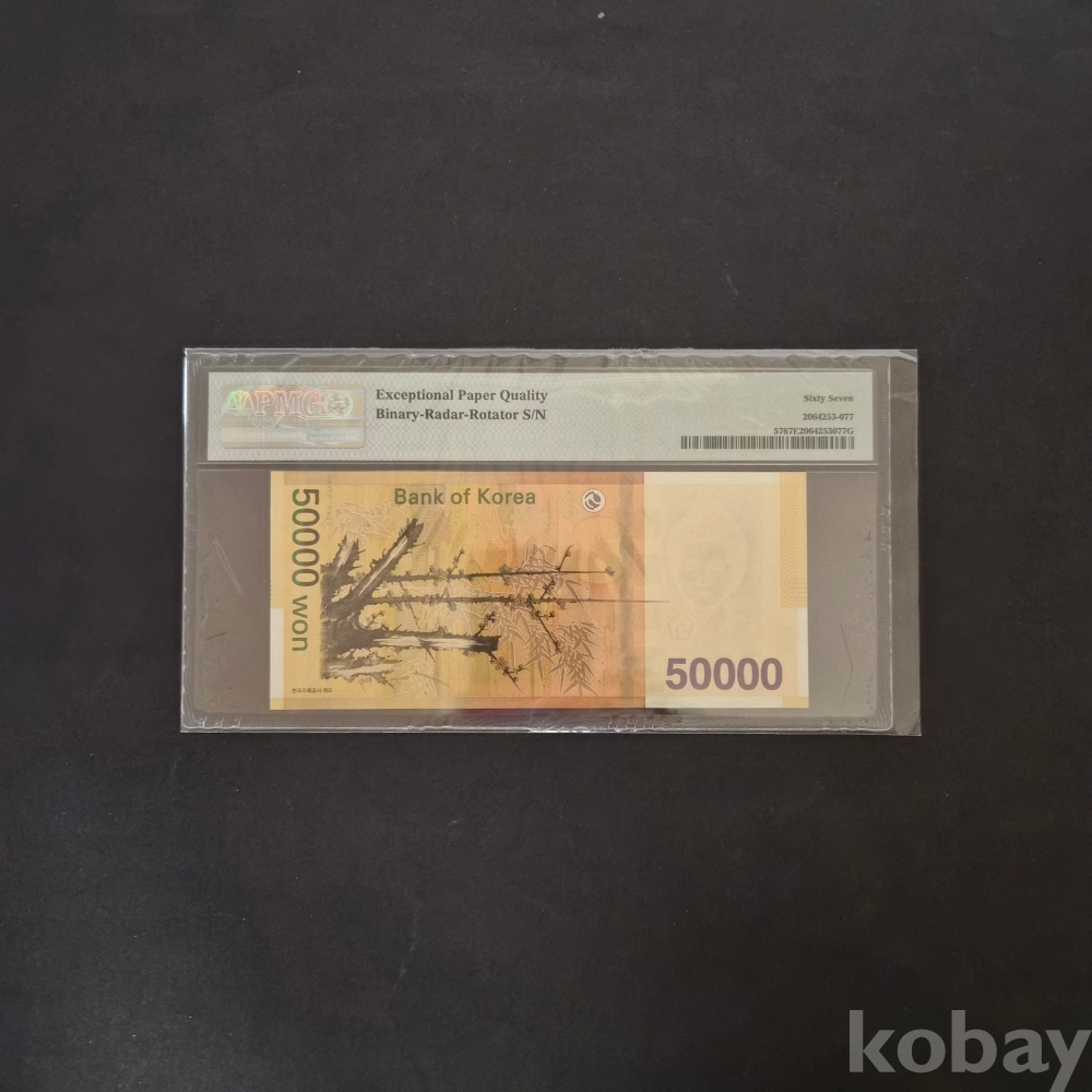 한국은행권 PMG #67등급 바이너리 레이더 오만원 입니다