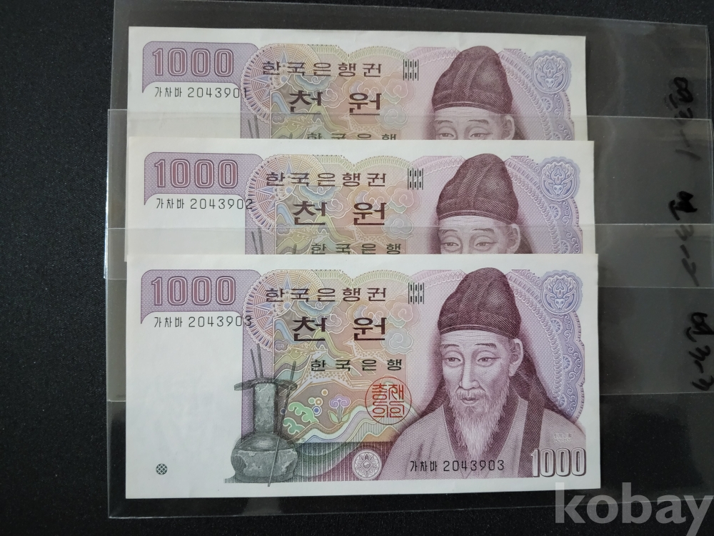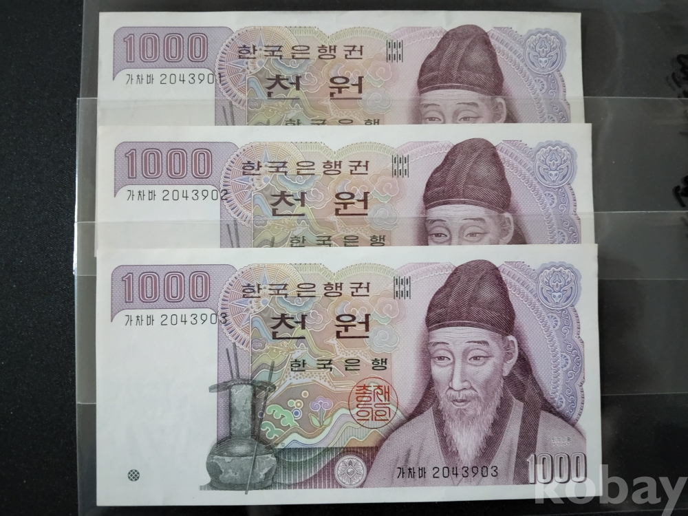 한국은행 나1,000원 연번호3매