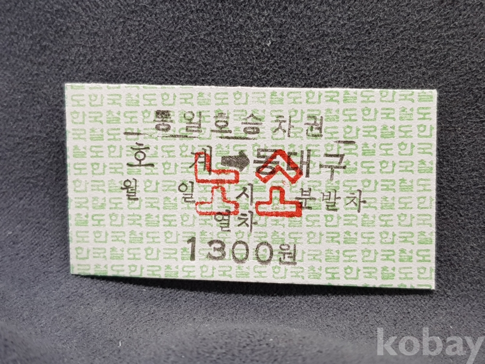 - 미사용 통일호 승차권 노소 " 호계 ▶ 동대구 " 1300원