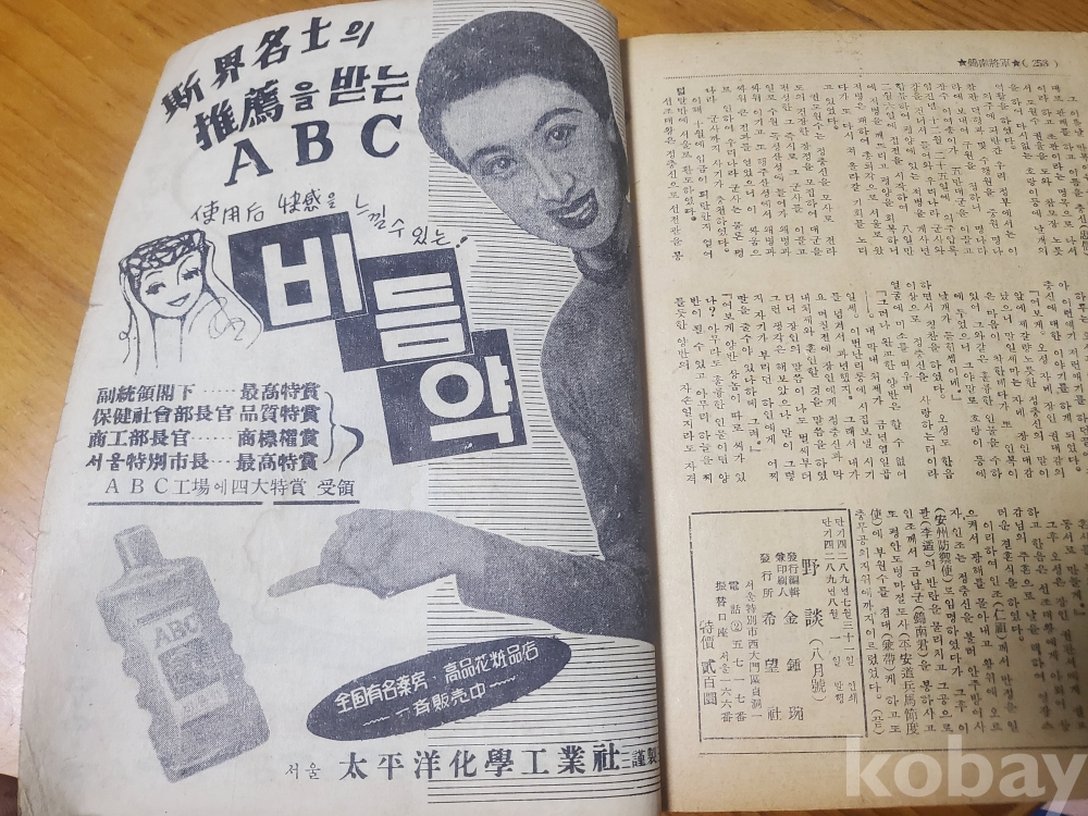 1. 야담(野談) 2권 8호, 희망사, 1956년, 258쪽, 표지모델 무희 손혁림, 상태 상, 사진 참조