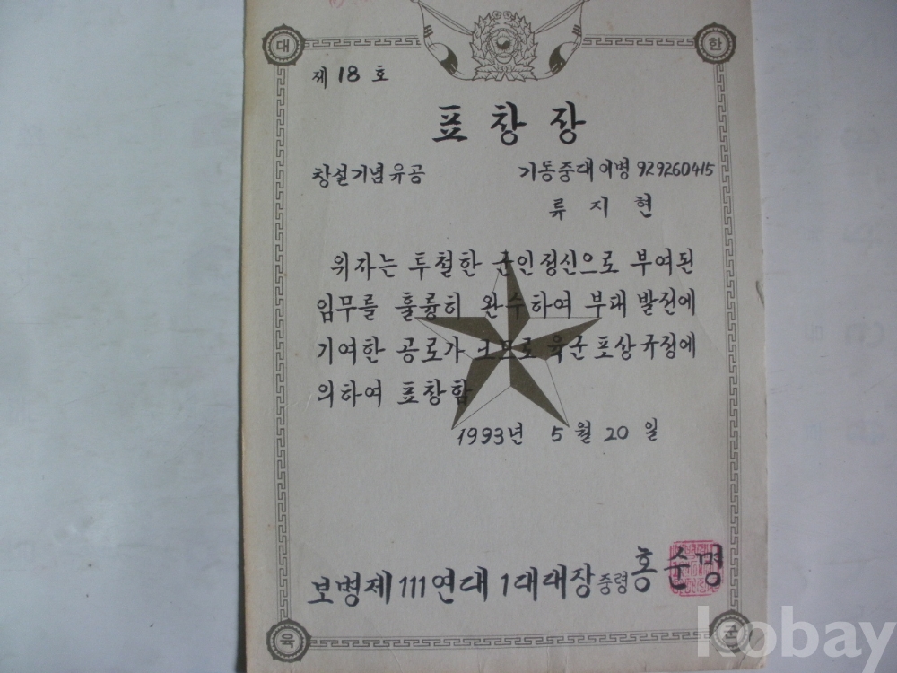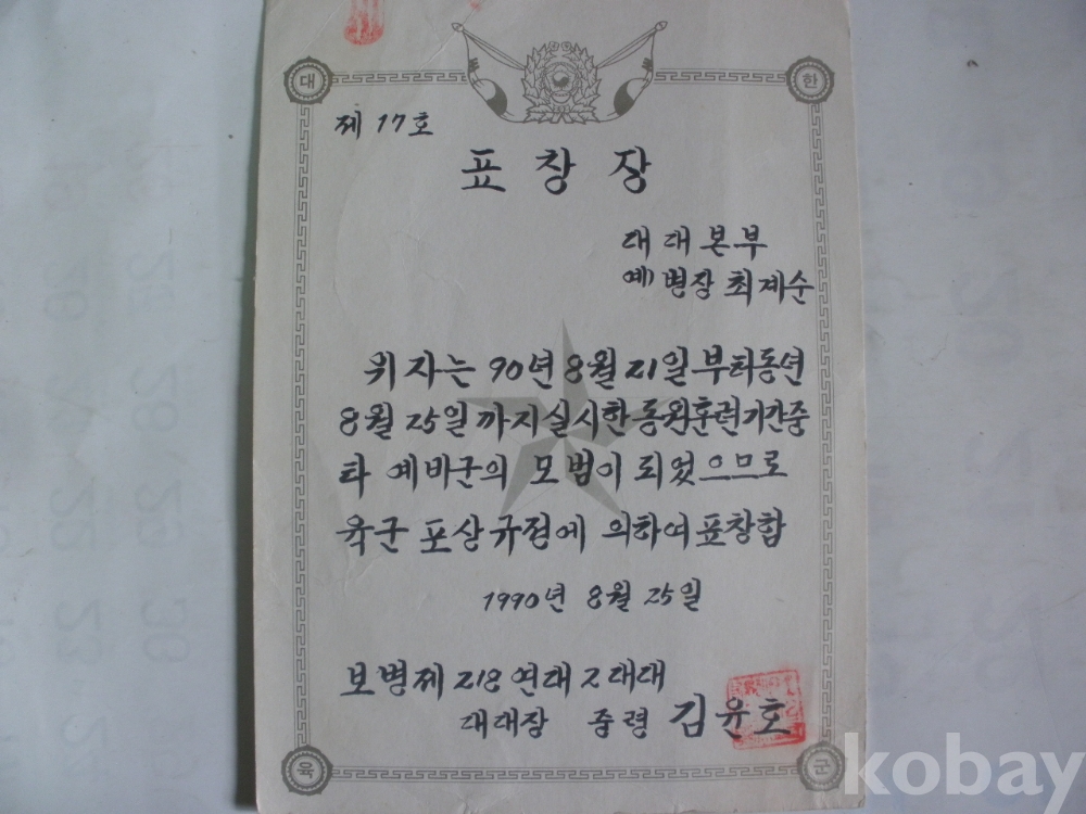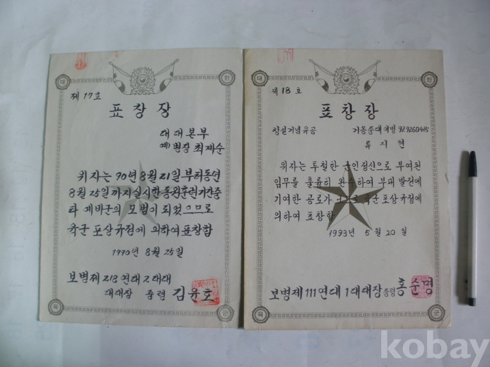 부대 창설기념 유공 및 예비군 동원훈련 모범 - 표창장 (1993년, 1990년)
