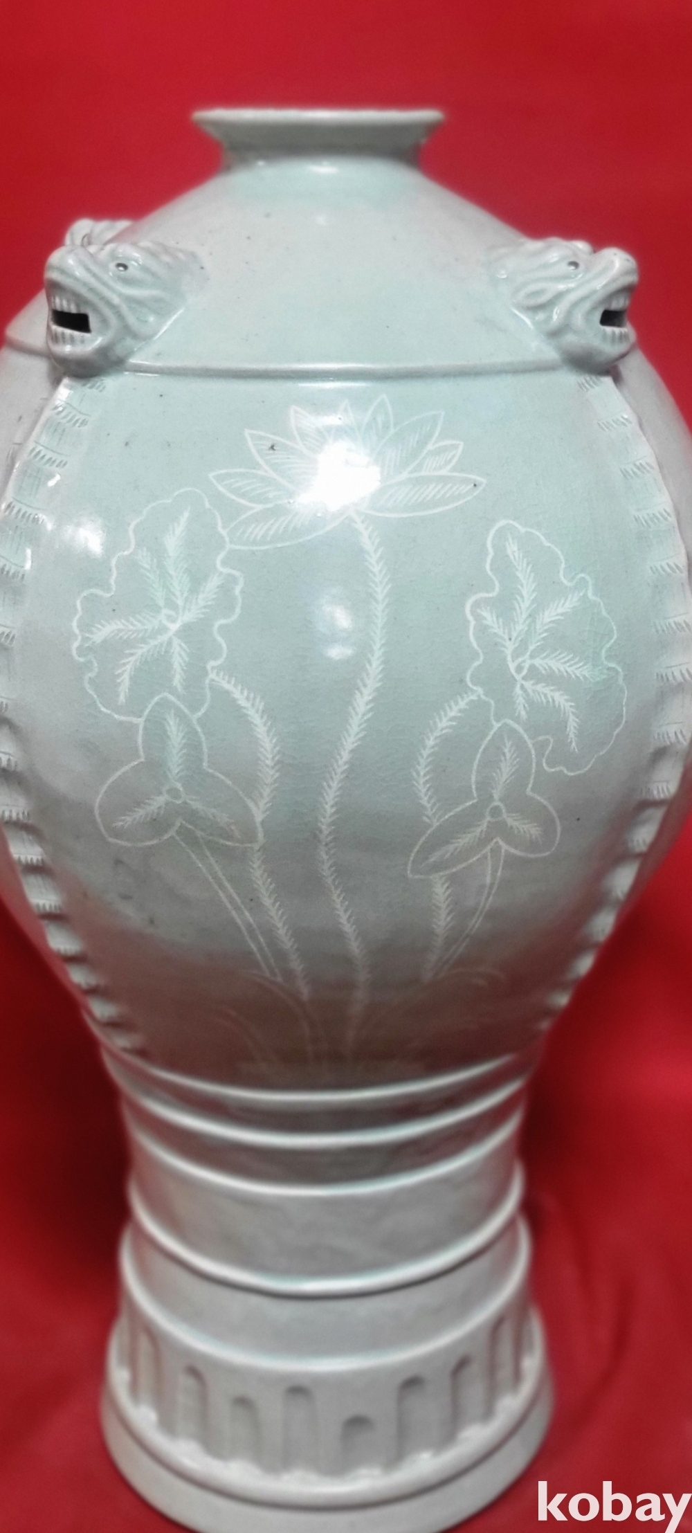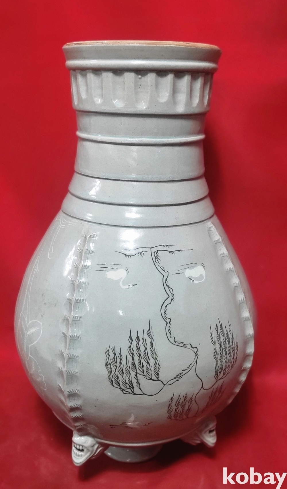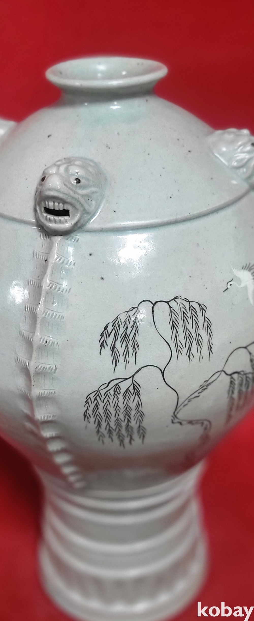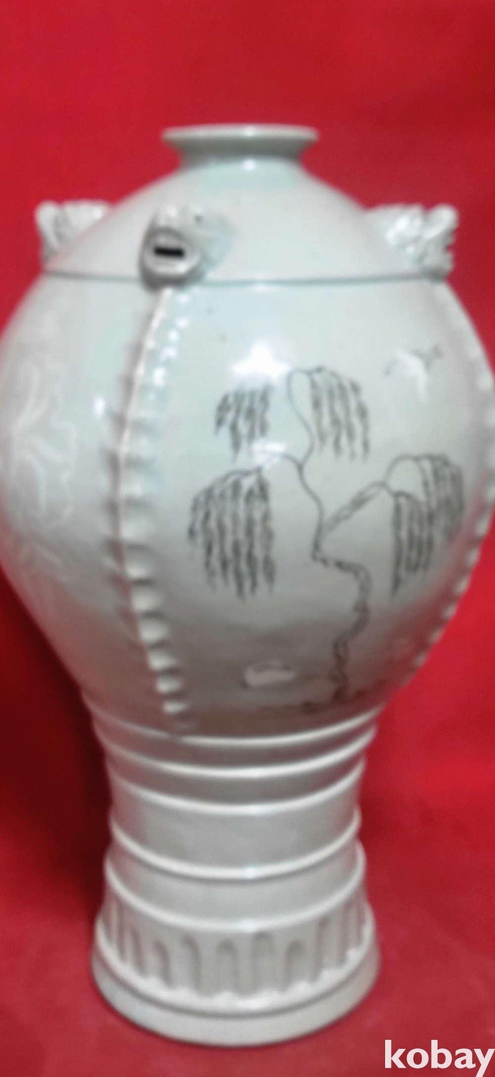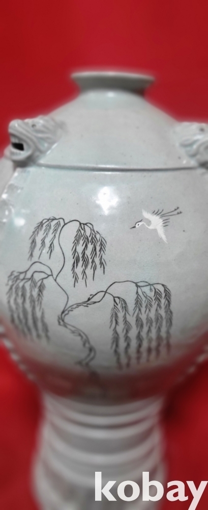 수많은 지순탁(陶菴 地順鐸) 선생님의 작품을 보았지만 이렇게 특별한 작품은 처음으로 접해봅니다, 사면에는 버드나무에 학과 오리가 노니는 도안과 연꽃이 각각 두개씩 도안으로 시문된 명품입니다,본 기물은 소장자 가정에서 다수의 고도자기와 유명한 현대 도자기 안동오 초석권순형 희제 황규동 지순탁 등 유명 작가의 도자기와 함께 나온 기물입니다,
