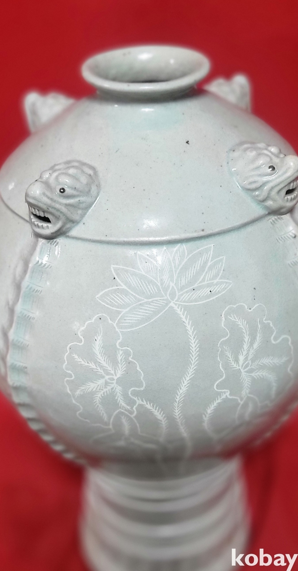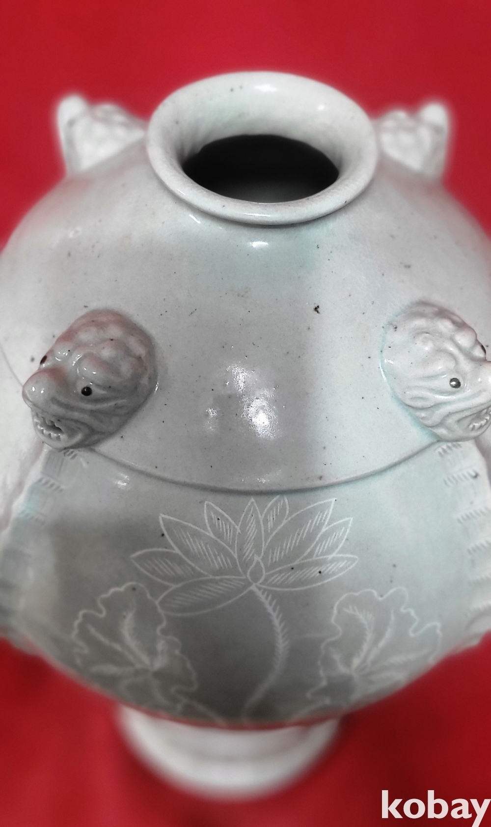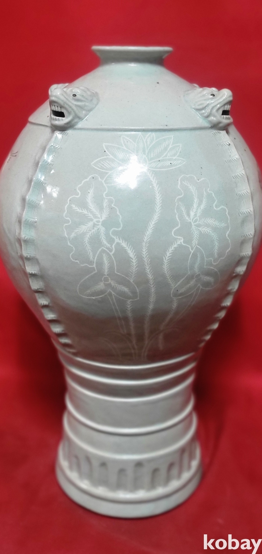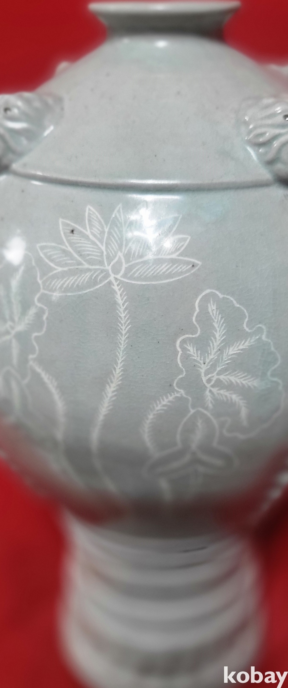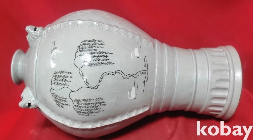 수많은 지순탁(陶菴 地順鐸) 선생님의 작품을 보았지만 이렇게 특별한 작품은 처음으로 접해봅니다, 사면에는 버드나무에 학과 오리가 노니는 도안과 연꽃이 각각 두개씩 도안으로 시문된 명품입니다,본 기물은 소장자 가정에서 다수의 고도자기와 유명한 현대 도자기 안동오 초석권순형 희제 황규동 지순탁 등 유명 작가의 도자기와 함께 나온 기물입니다,
