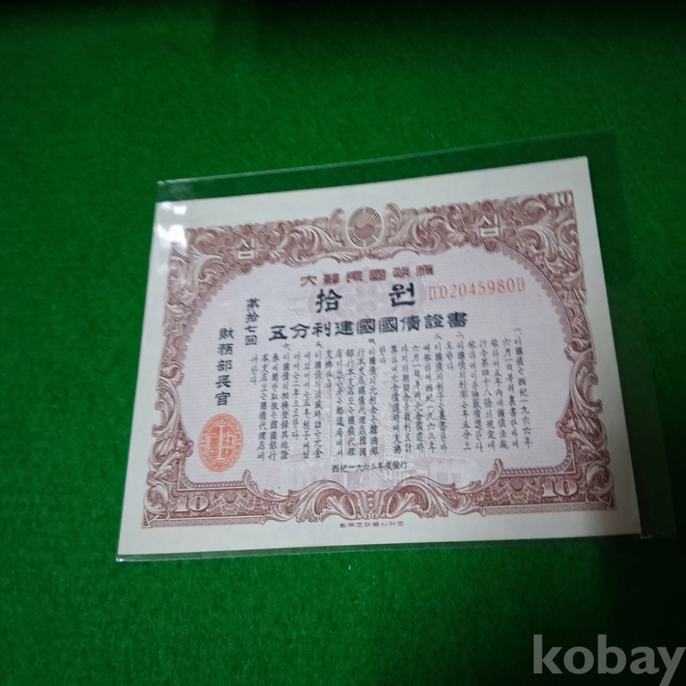 대한민국 1963년 건국채권 17회 10원 미사용