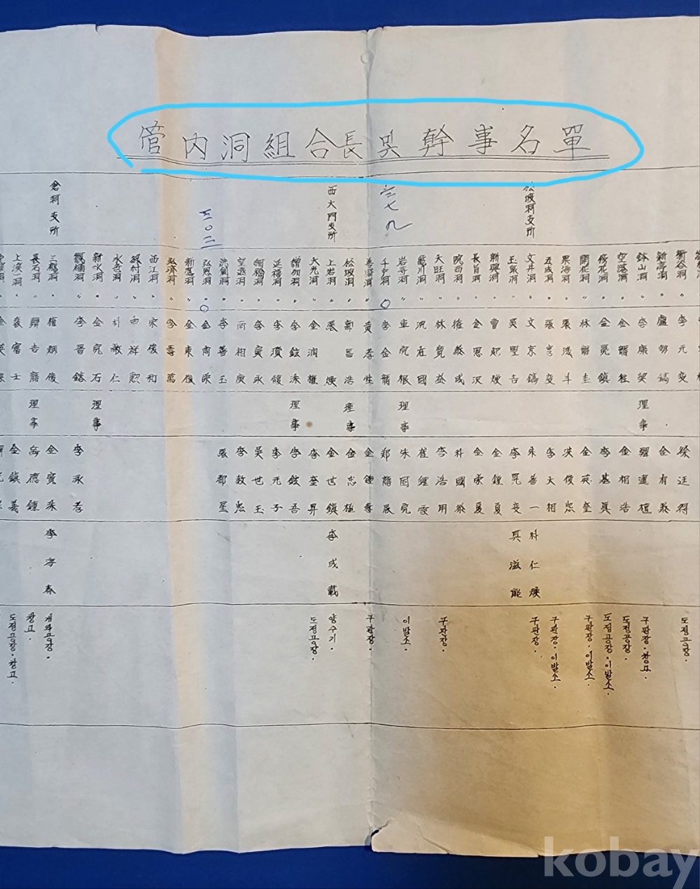 용산지소 등 관내(管內) 동(洞) 조합장(組合長) 및