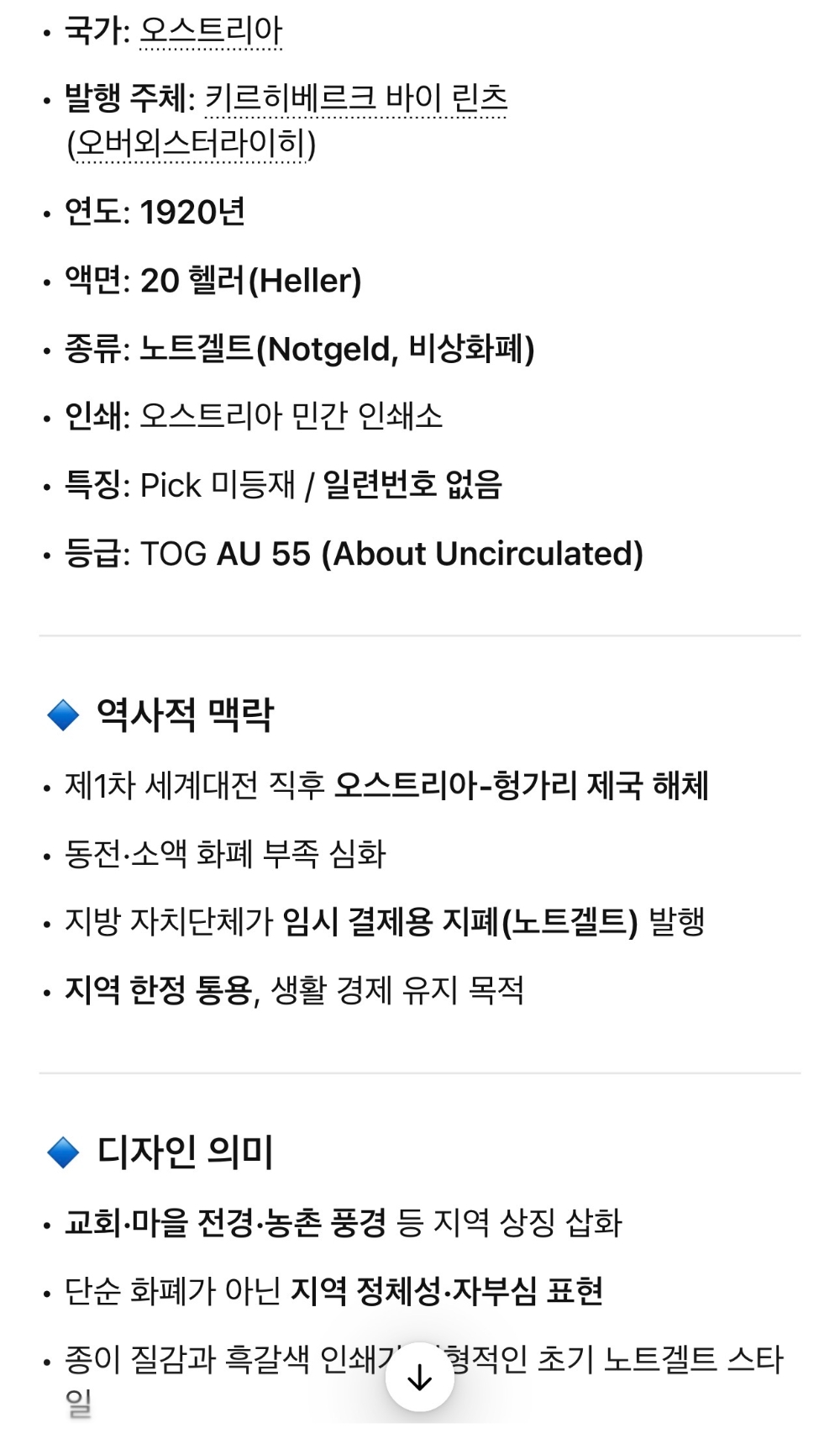 [희소] 1920년 오스트리아 비상화폐 20헬러 TQG 55