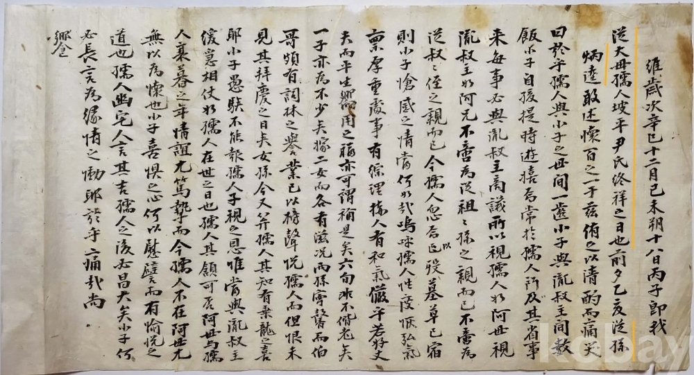 ⓶ 선성(宣城) 김휘길(金輝吉)이 고(故) 정 유인(鄭孺人) 파평 윤씨(坡平尹氏) 종상(終祥)에 올린 제문.