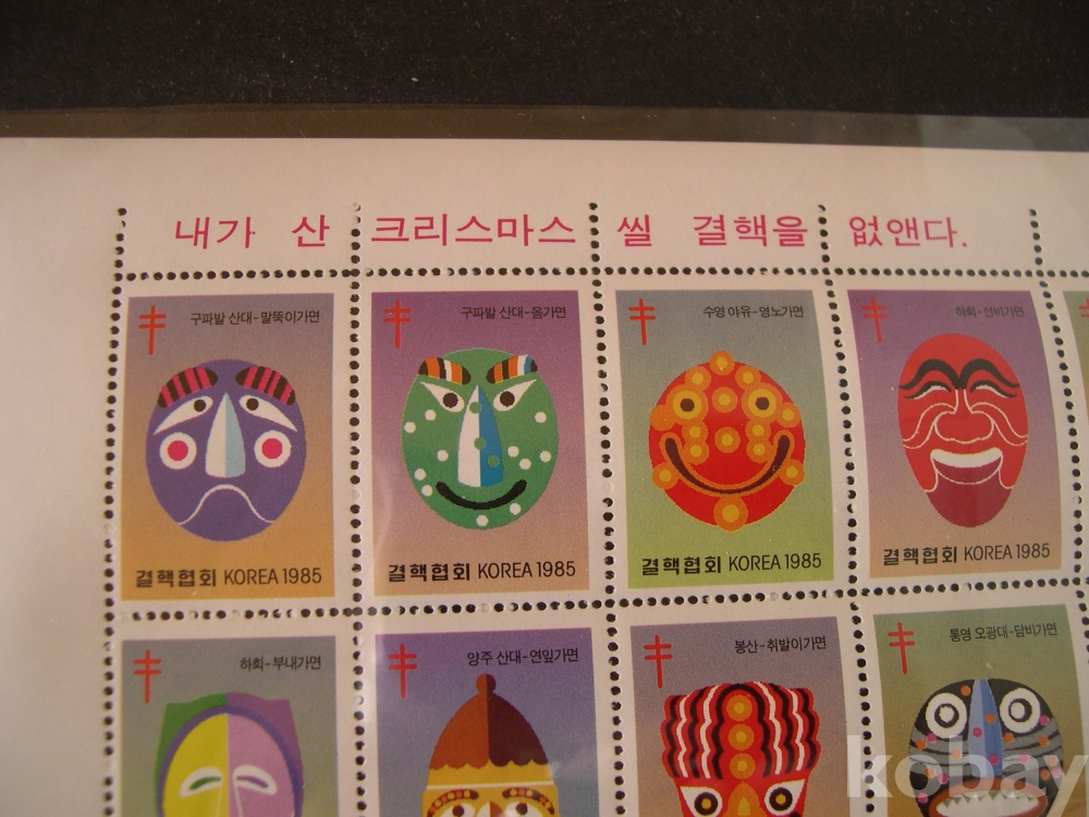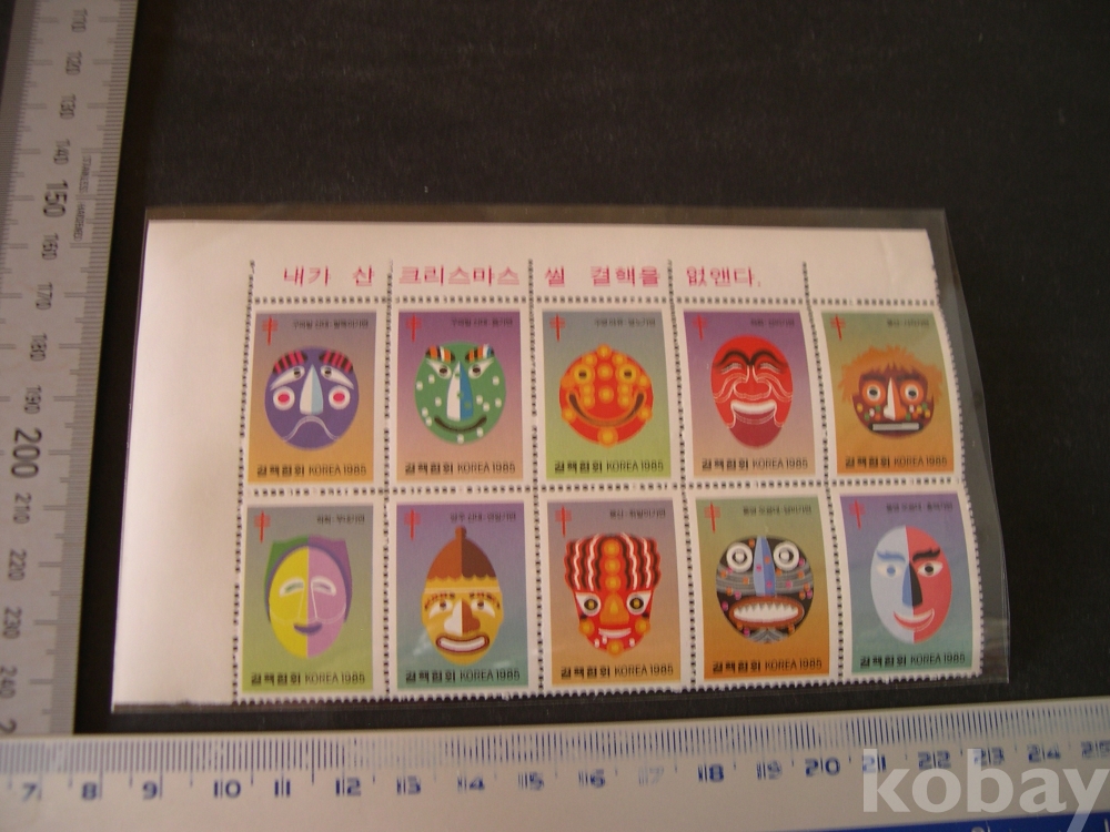 1985년 씰 #21920 : 한국의 탈 (50매전지중 1코너 10종블럭)