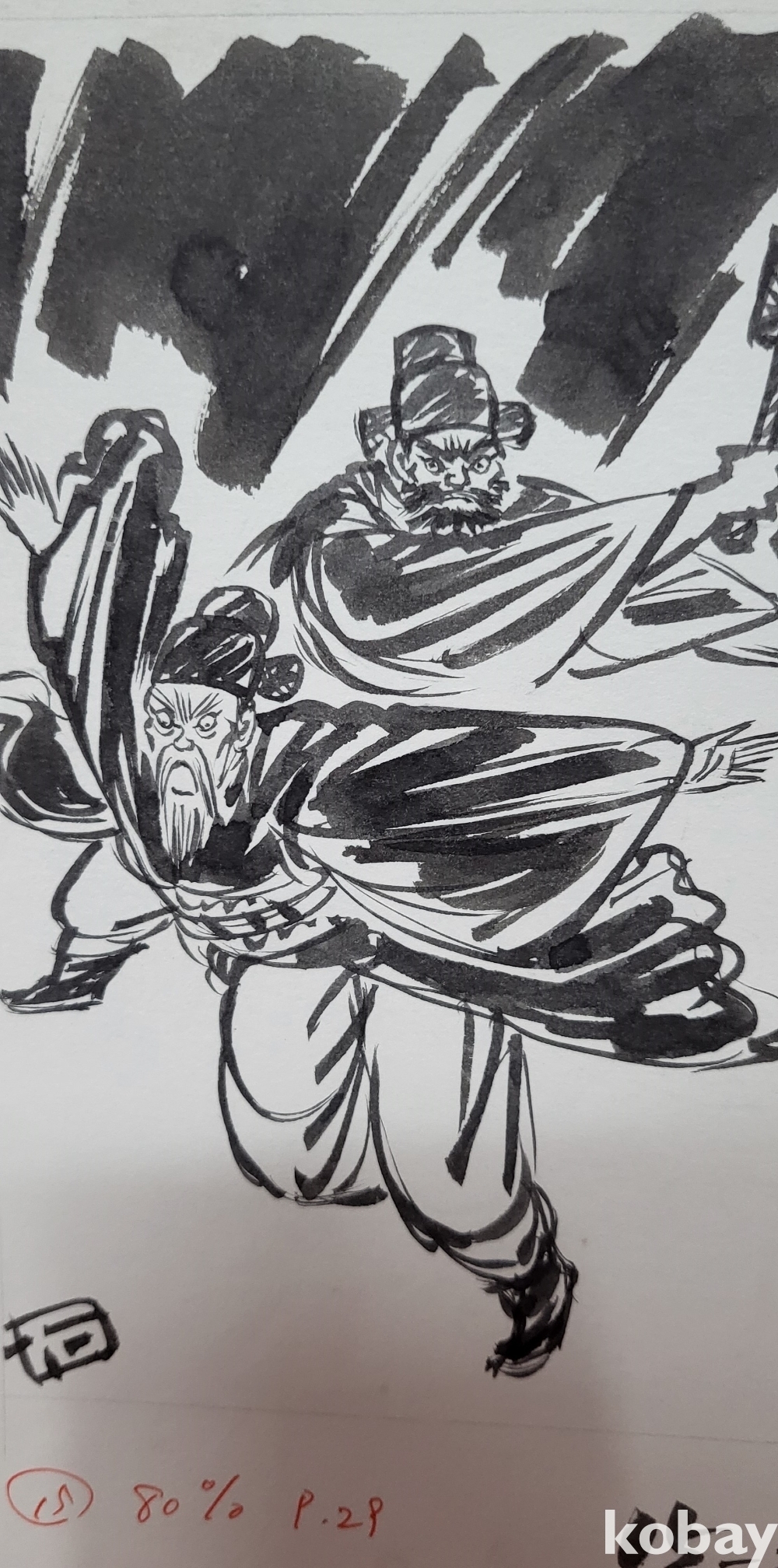물과 먹으로 만 직접 그려진 수묵화 삽화입니다,