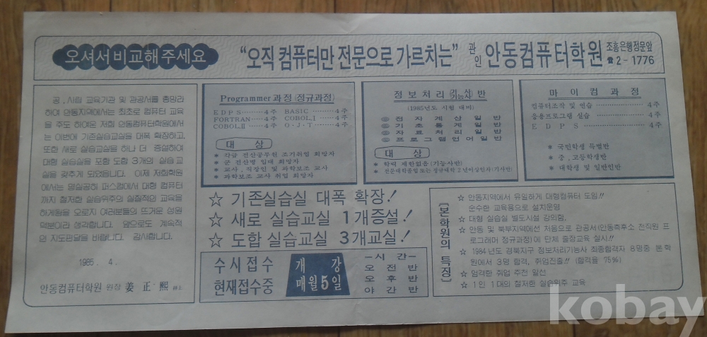 전단지: 1985년 안동컴퓨터학원
