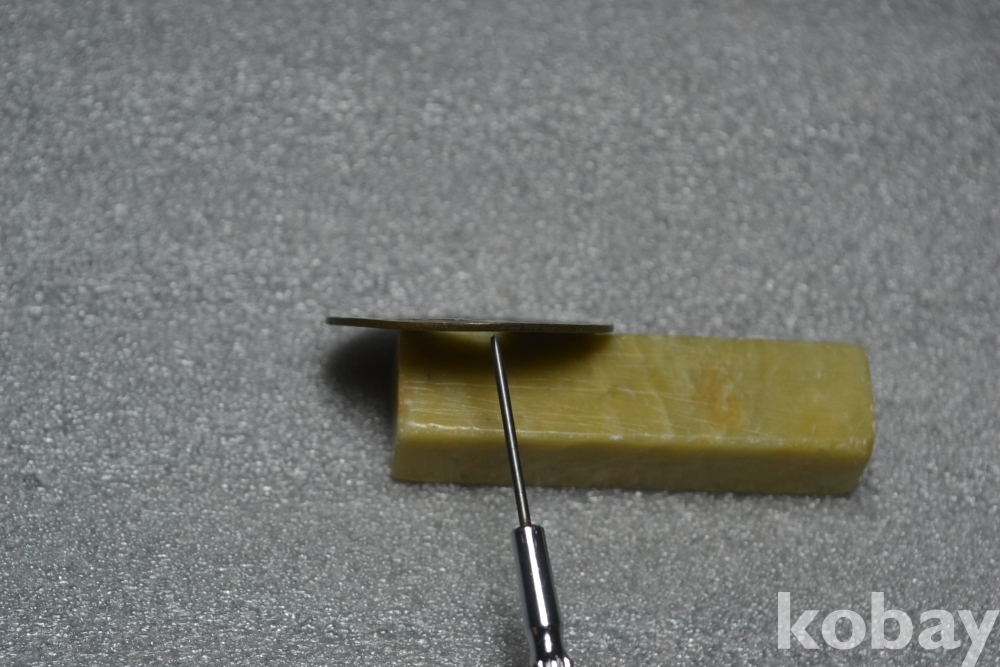 ㅡ> 사진상으로는 잘 안보일수 있지만 엽전이 작은 눌림흔적이 있는 상태 입니다. (7시방향 검은핀으로 가르킨 부분 사진참조)