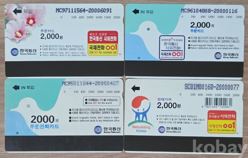 8-90년대 제작된 공중전화카드 4종일괄입니다 (사용제)