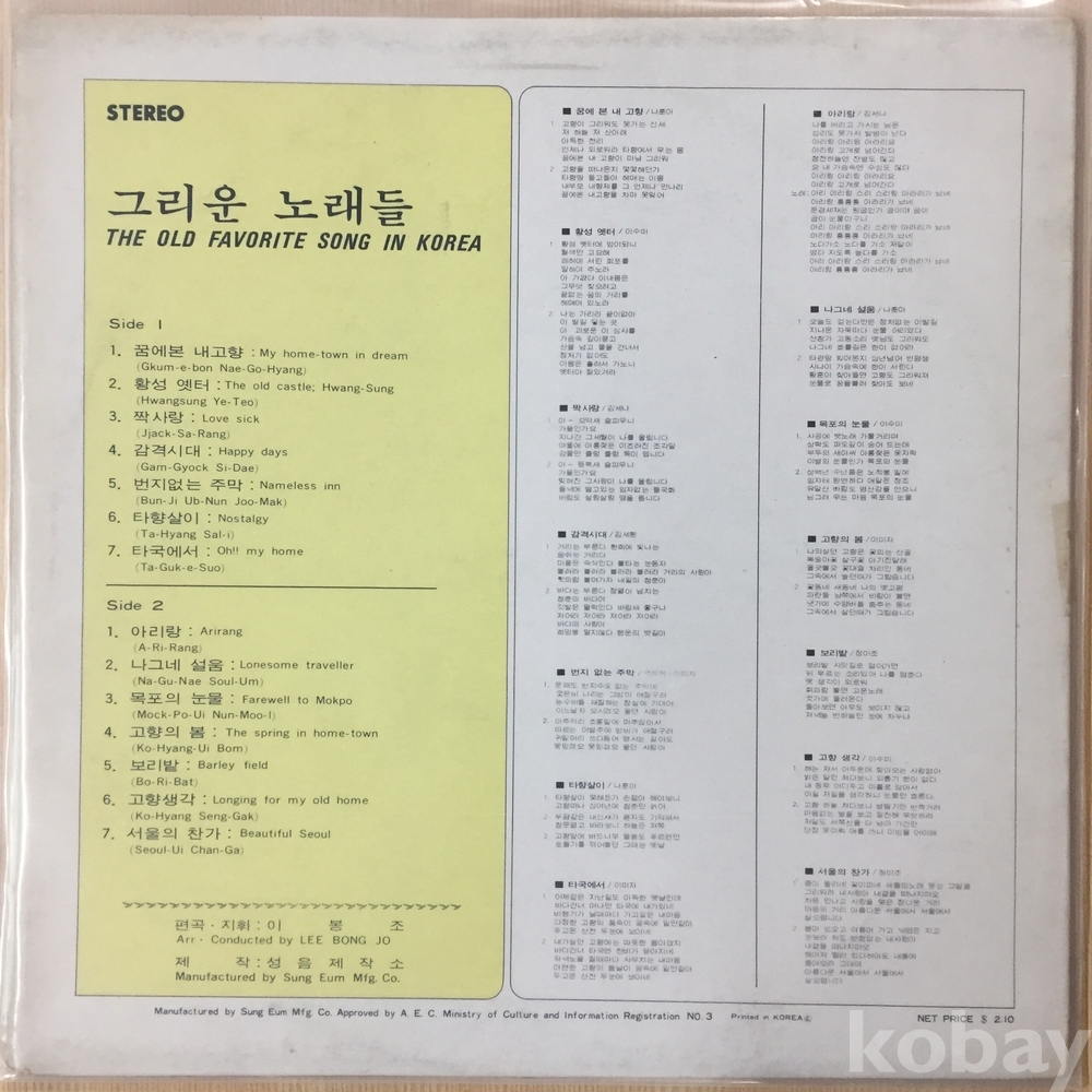 ⊙ 1975년 / 성음레코드 -