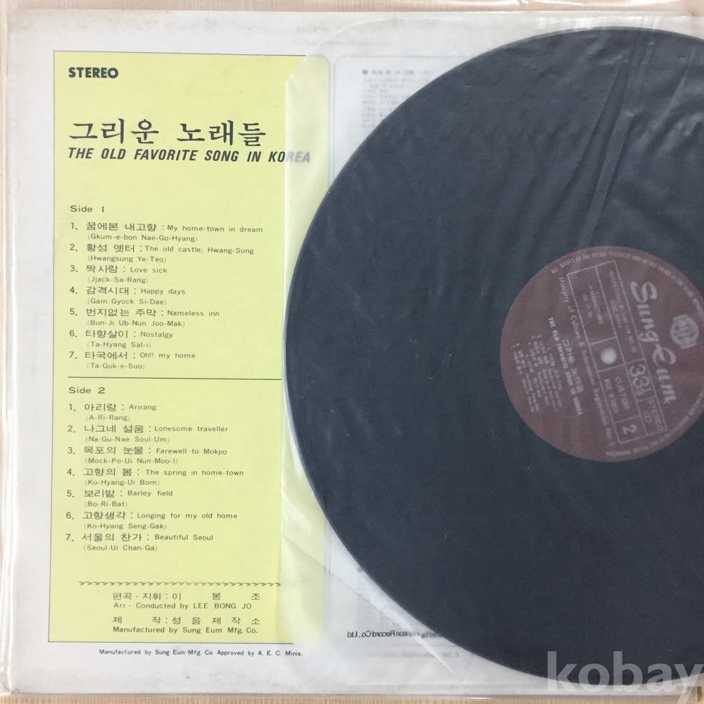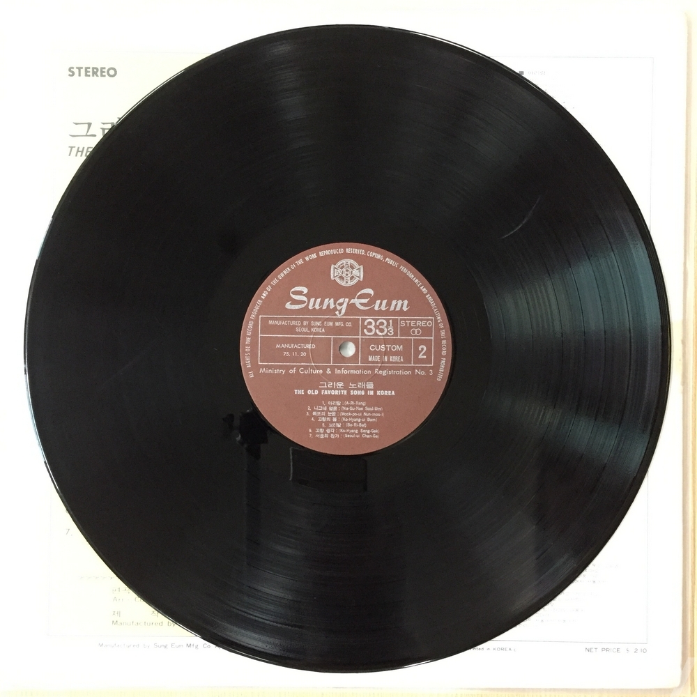 . 가요음반 대부분은 휘어짐이나 손상을 방지하기 위해 무지싱글자킷을 하나 더 사용하여 보관되었던 음반들입니다.