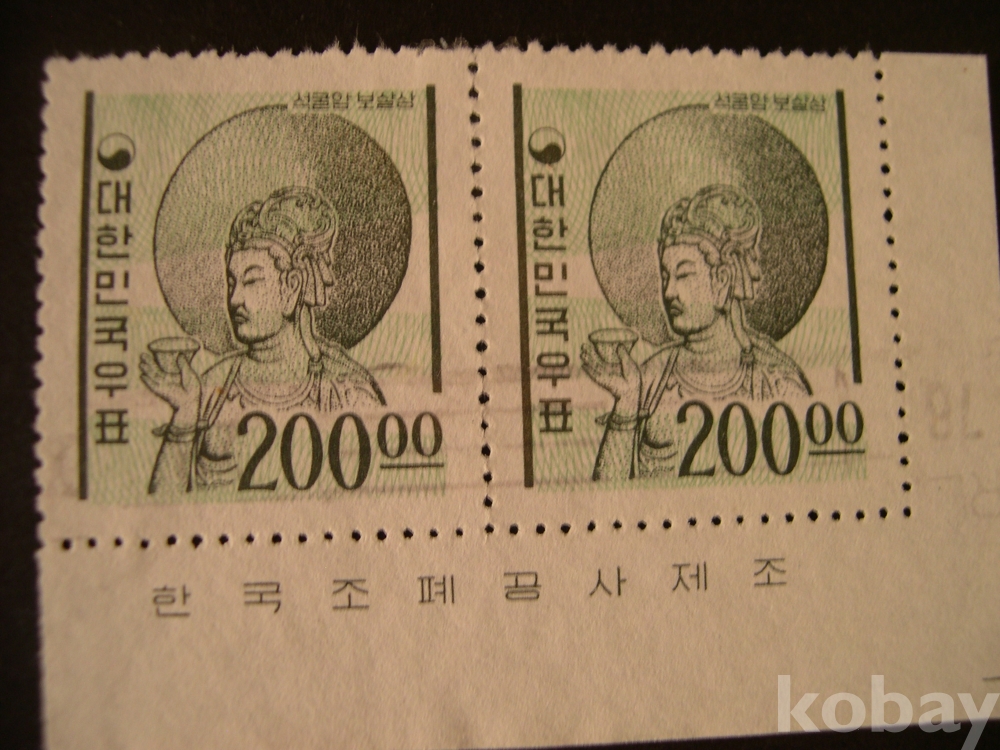 2매명판 사용제 #22736 : 200.00원 석굴암보살상 - 1차 국산백지 (1965. 9. 1)