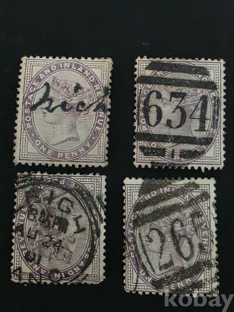 영국 식민지 스트레이츠 세틀먼츠 우표 원페니 우표 4장 일괄 1867년 ~ 발행 우표 클랙식 우표.