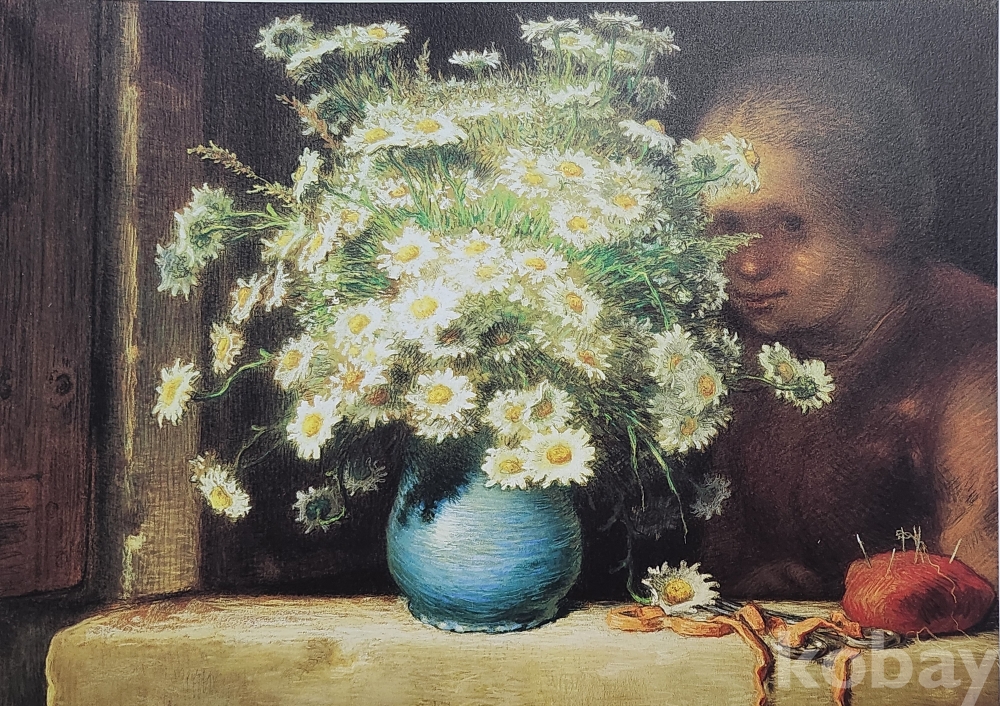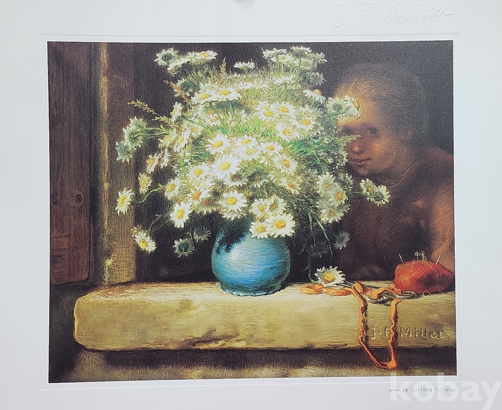 프랑스 유명화가 장프랑수아 밀레(Jeanㅡ Francois )대표작품 " 마거리트 꽃병 "압인(壓印)판화입니다,