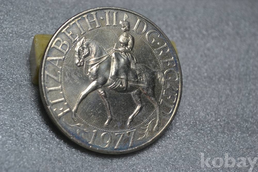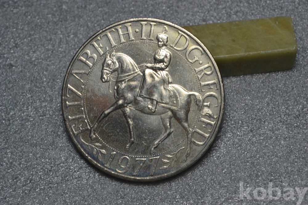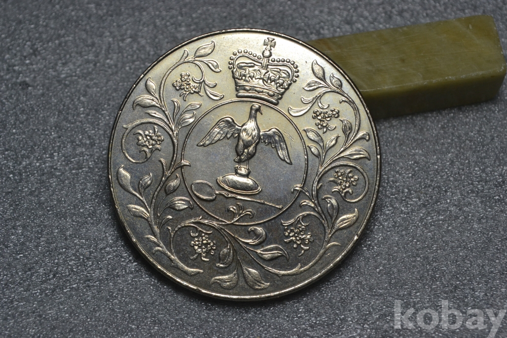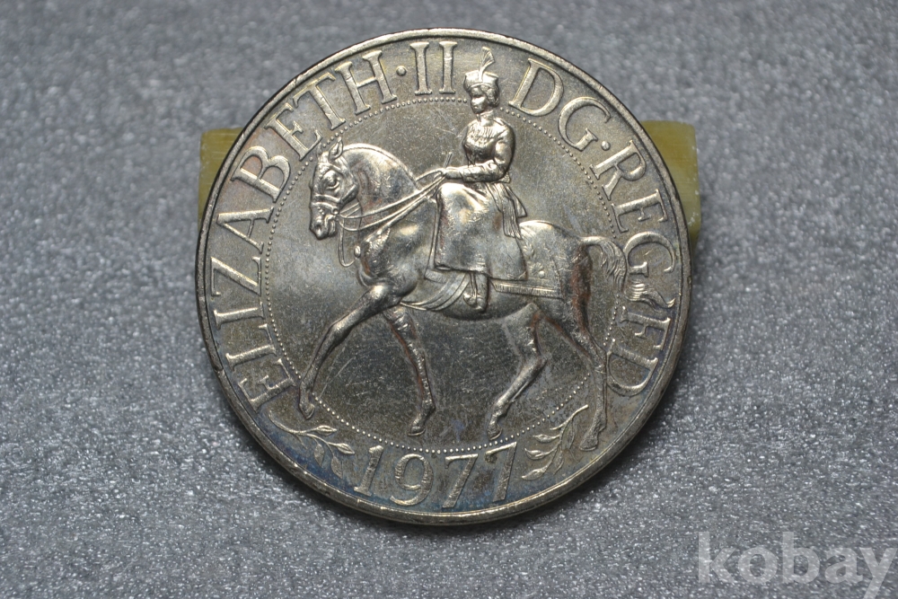 " 귀한종류 (38.5 mm 대형 크라운 사이즈)(극미품 이상~) " ~ 영국 엘리자베스 2세 즉위 25주년 기념주화 25뉴펜스 / 1977년도 제작발행주화" 영국 엘리자베스2세 즉위25주년 기념주화 / 대형 크라운 주화 "
