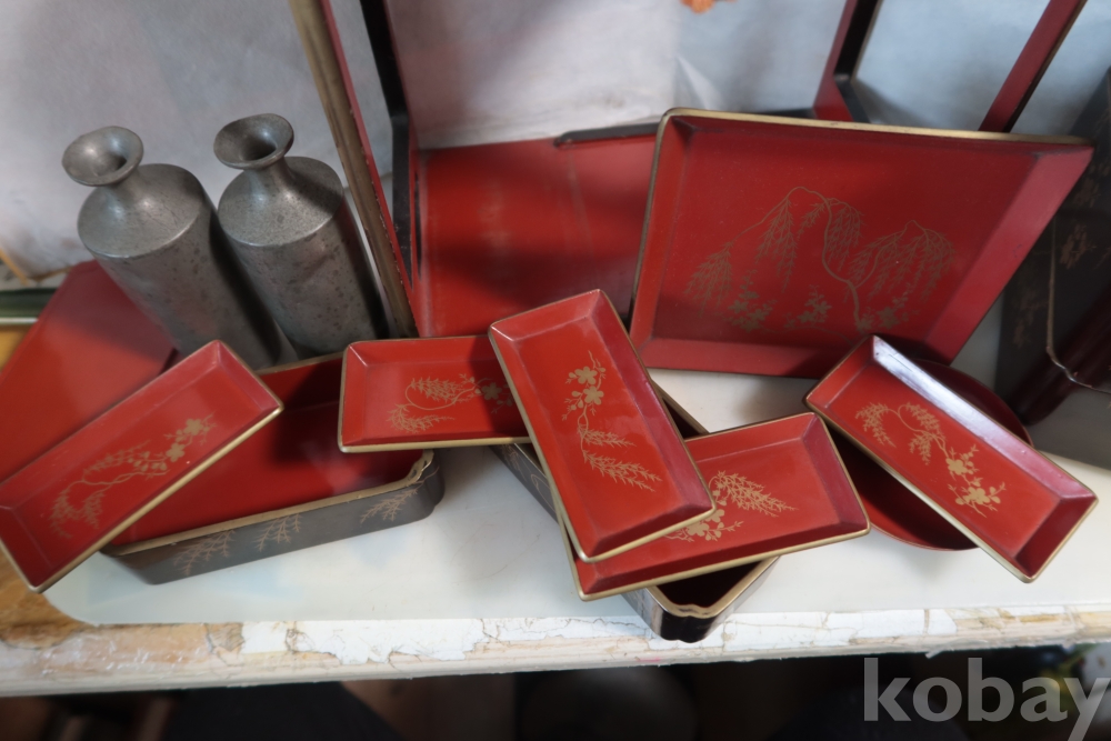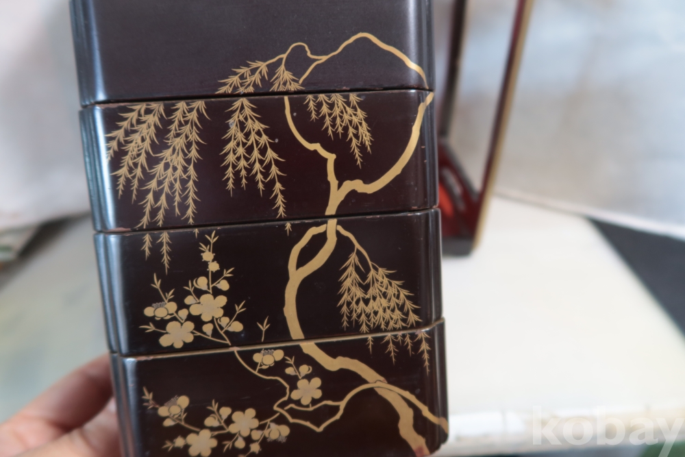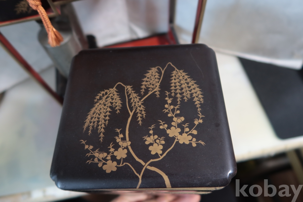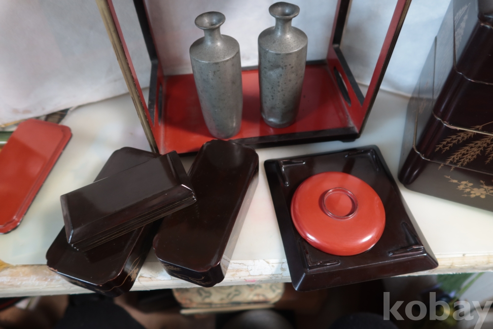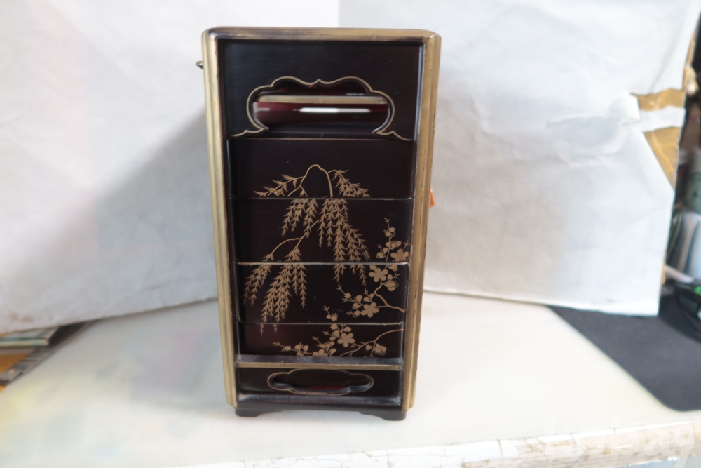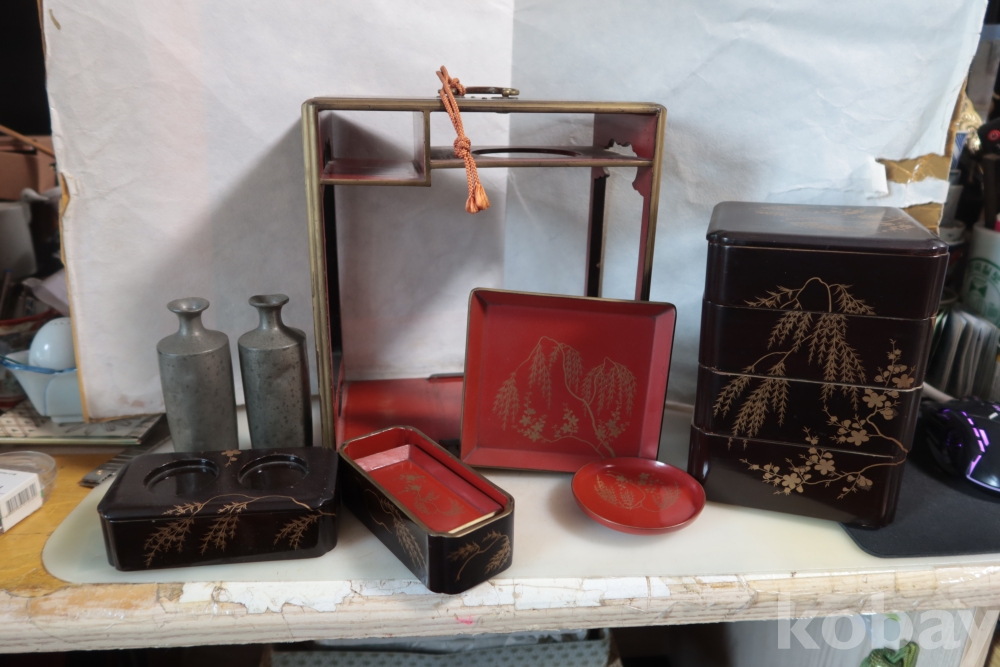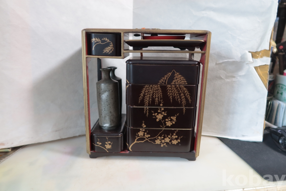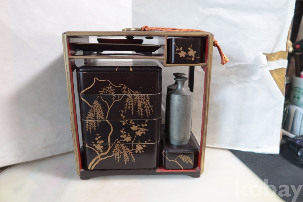 일본 칠기 도시락 세트 임니다 일본 유일의 문화공예품 칠기 명품 임니다 술병은 세월의 찌그러진 부분이 보임니다 섬세 정교한 명물 임니다 사진 참조 하세요