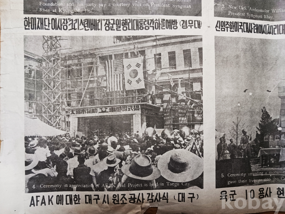 AFKN의 대구시 원조공사 감사식 . 서울 영등포 10용사 현충비 제막식, 서울 경무대 프란체스카 여사 건강 어린이 표창