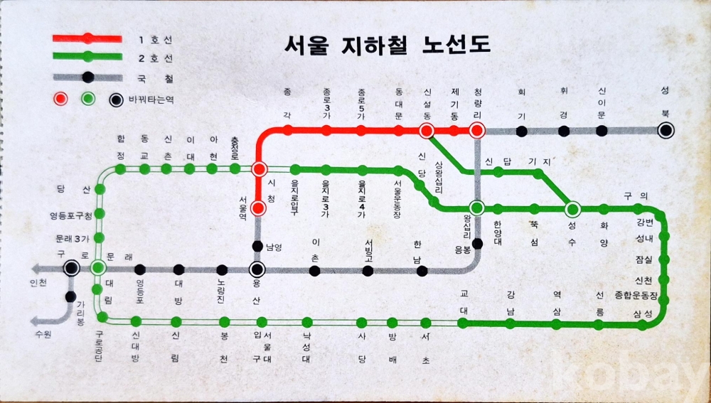 1983년 8월 16일 서울 지하철2호선 을지로구간 개통기념으로 제작된 카드로 뒷면에는 서울 지하철 노선도가 있습니다.(사진참조)