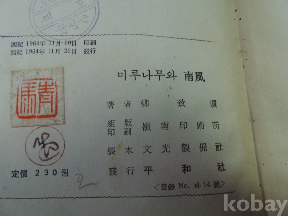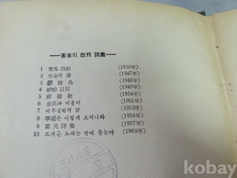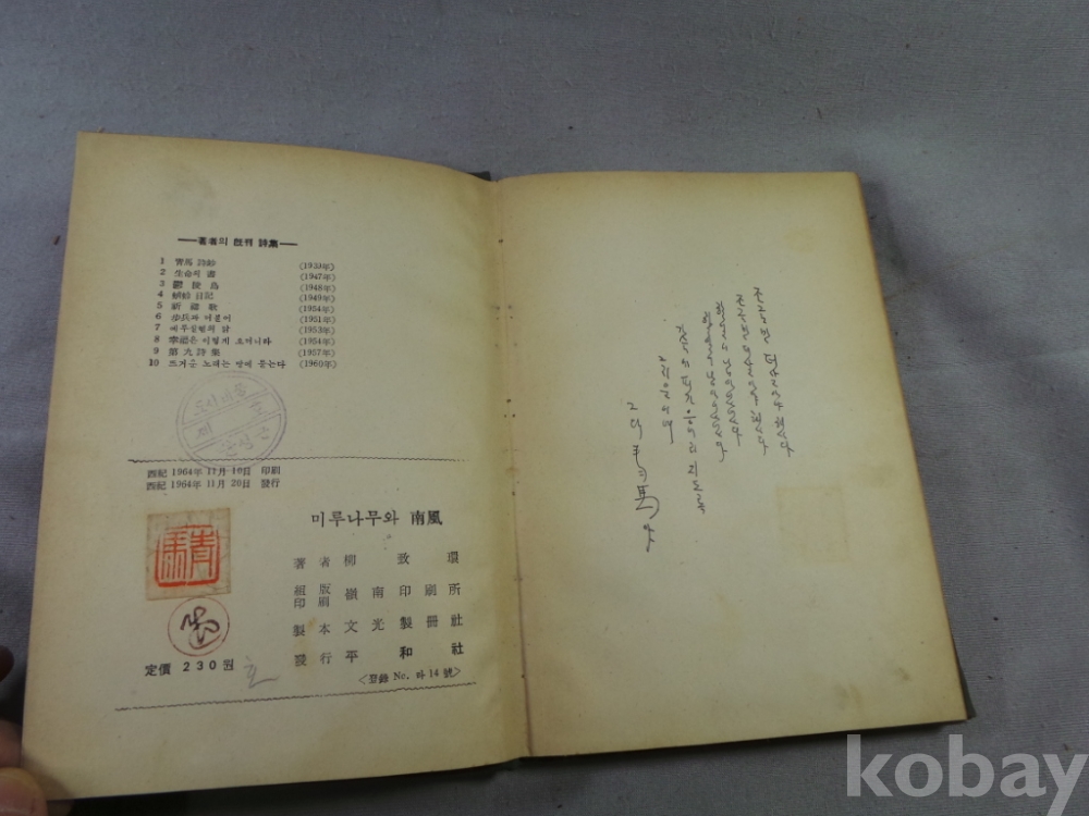 1964년 유치환님의 미루나무와 남풍 귀한 초판 시집