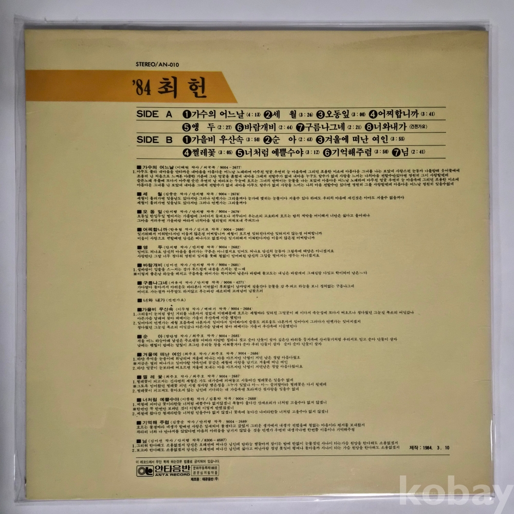 [추억의 희귀 LP 기획전] (최 헌) ‘84 / 가수의 어느날 ☆ 가을비 우산속