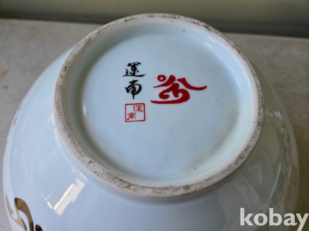 금분으로 달마와 불경 글씨가 있는 달 도자기 입니다.