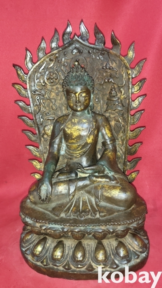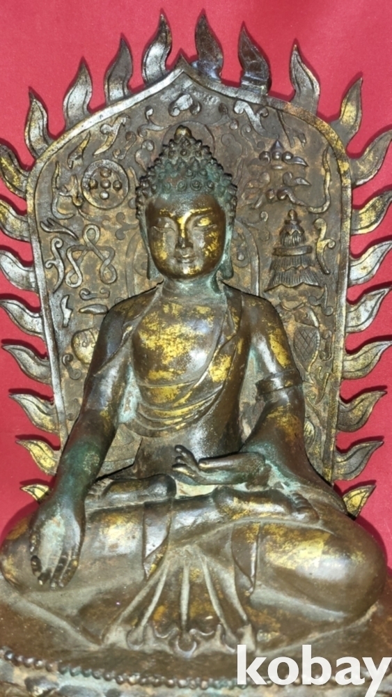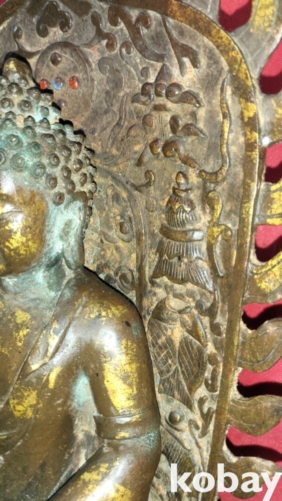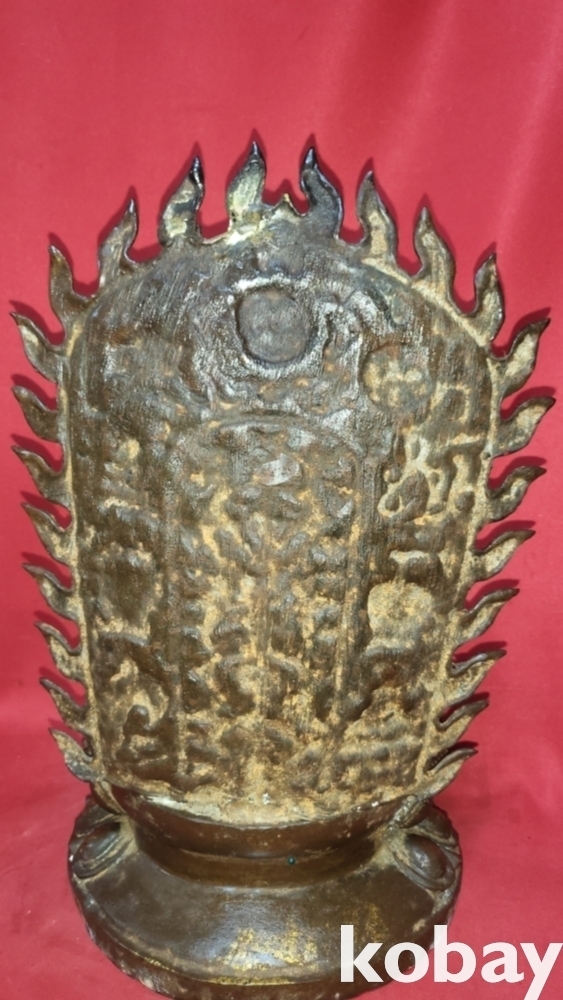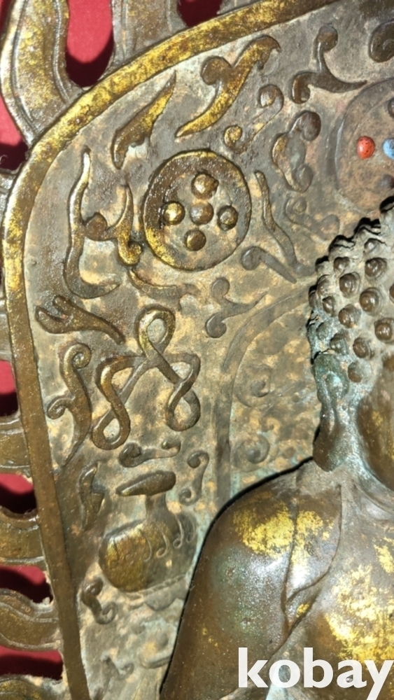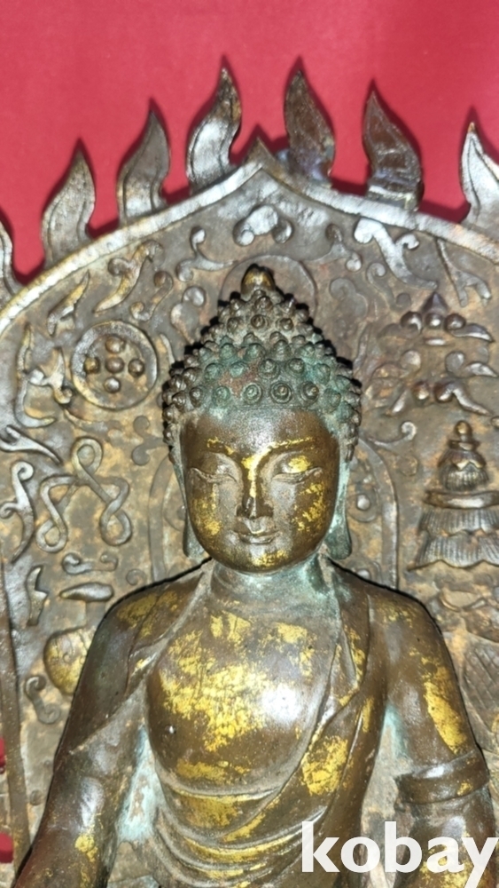 명망기 연대 갖춘 금동 광배있는 좌불상입니다,