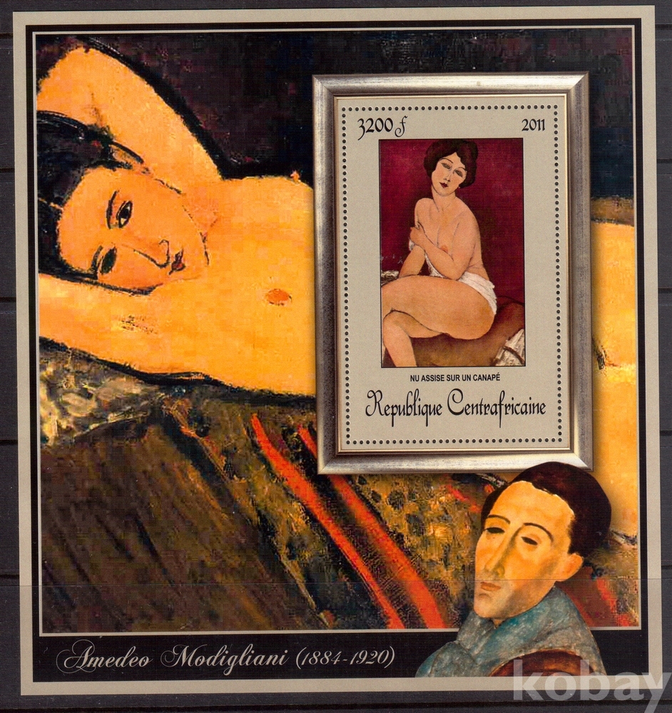 (누드명화) 중앙아프리카 2011 Amedeo Modigliani 소파에 앉았는 누드 deluxe sheet MNH