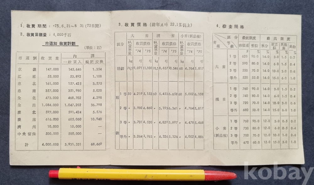 [희귀/사료] 1975년 농촌진흥청 하곡 수매 지도 자료 - 70년대 농업사 기록물