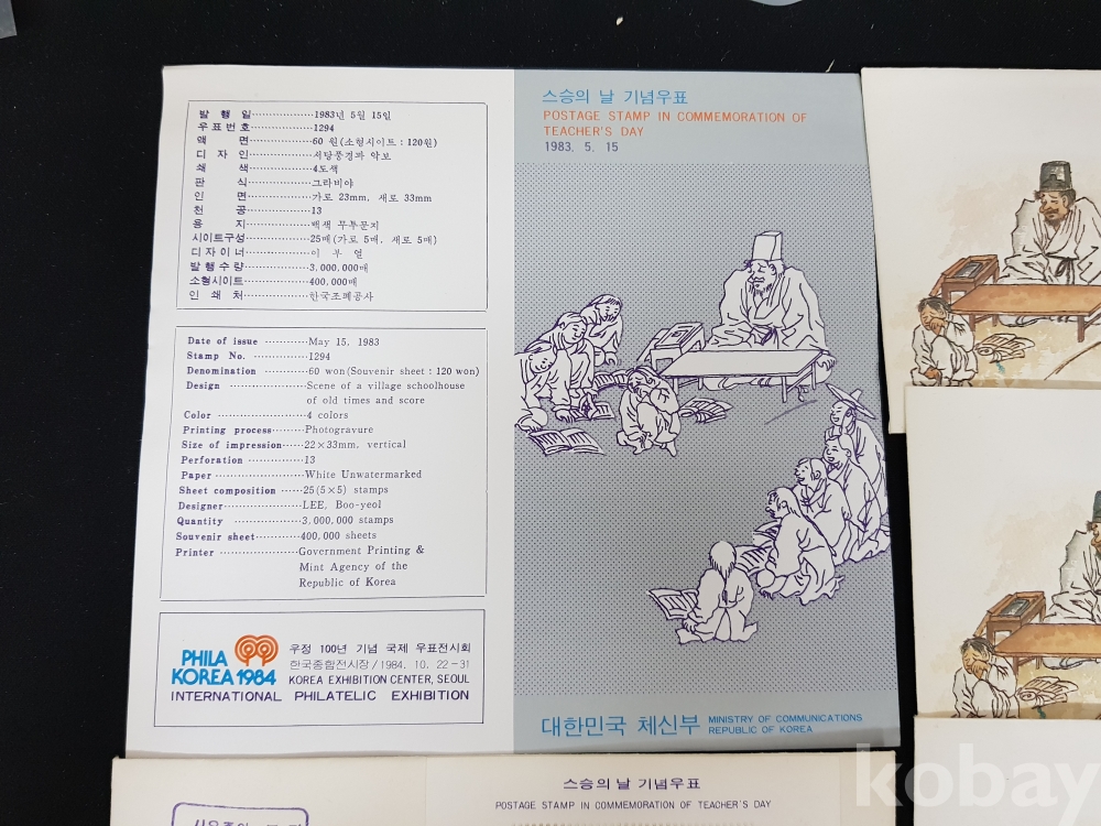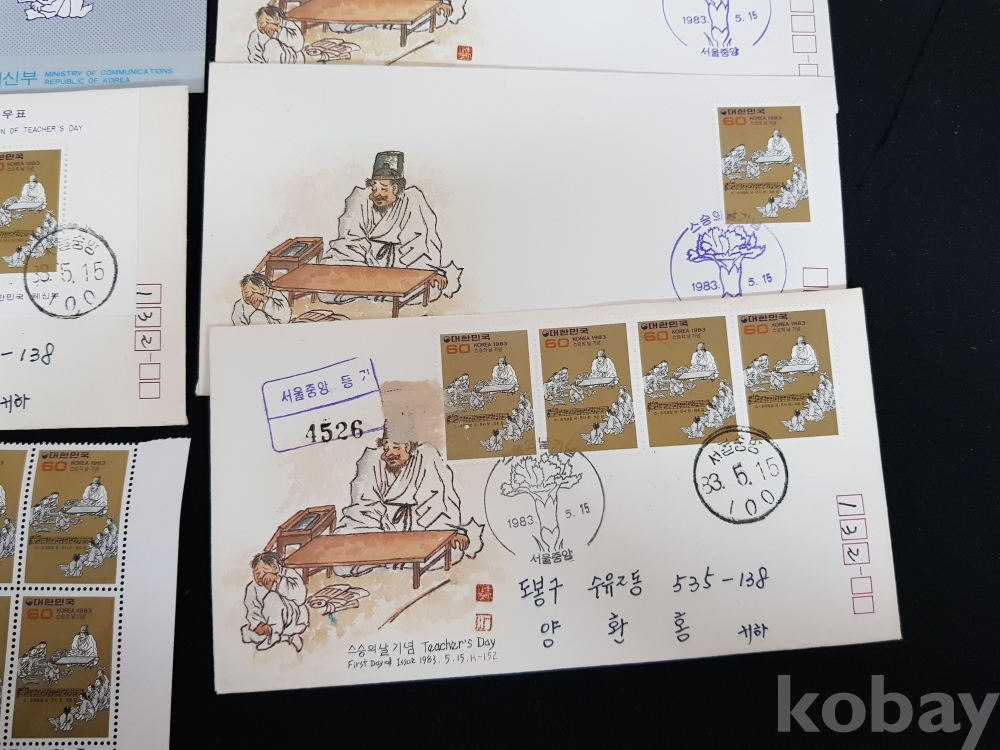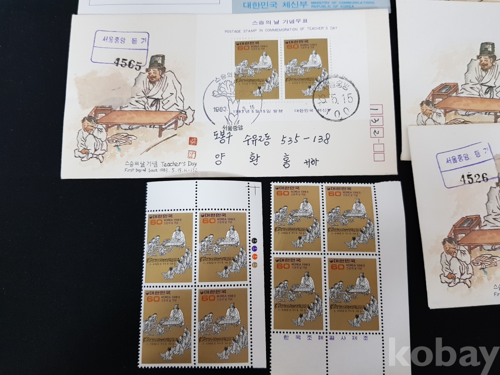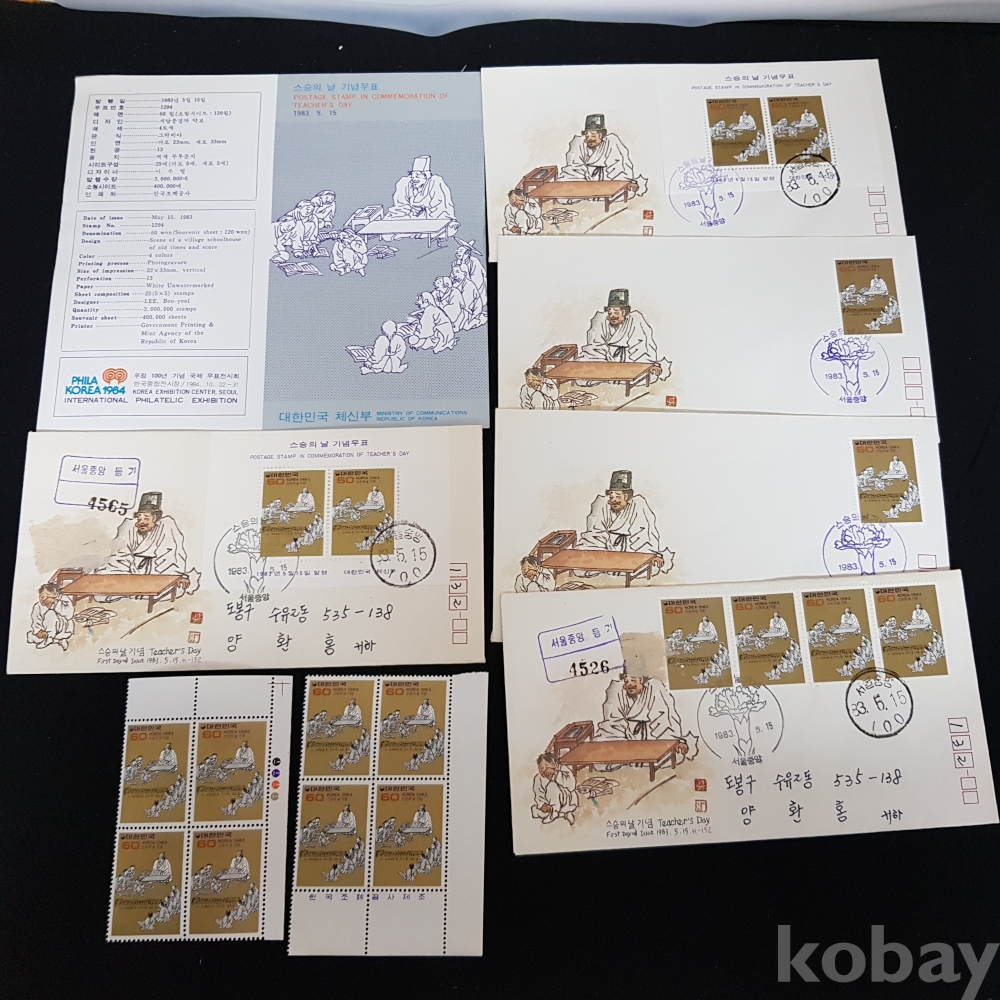 - 1983년 스승의 날 기념 안내카드, 초일봉피, 명판 등 모음