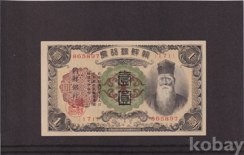 - 조선은행 1932년 개 일원 판번호 171번 유번호권 미사용 지폐