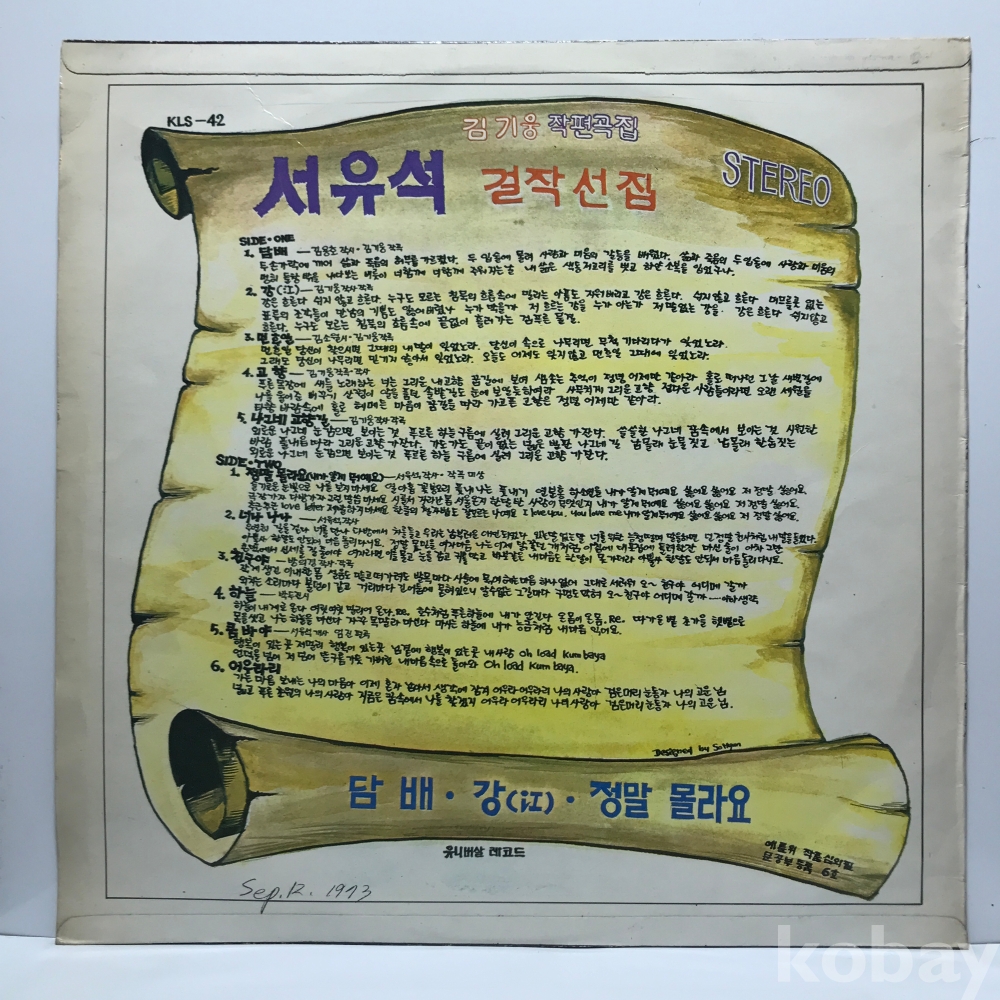 | 자켓상태 | EX : 약간의 마모, 모서리 찢김 존재 | 음반상태 | EX : 재생에 영향 없는 가벼운 기스 존재 | 발매정보 | 알수없음 | 가사지여부 | 무 |