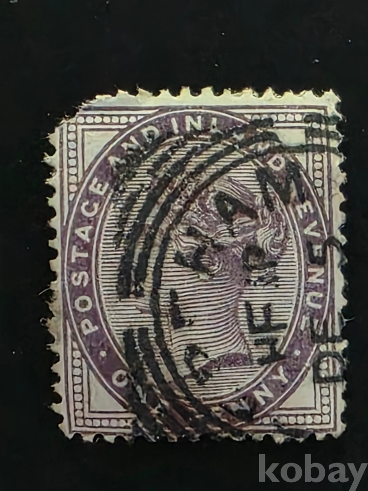 영국 식민지 말레이 지역 1867년 원페니 우표. 1800년대 클래식 우표