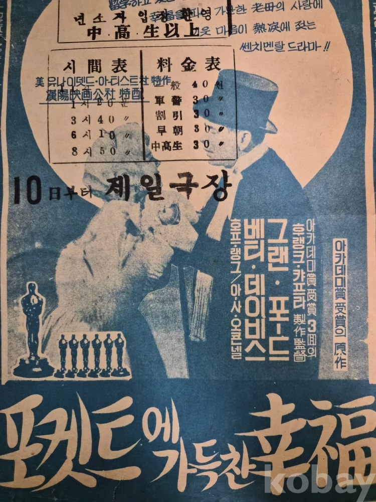 [희귀 근대사 자료] / (영화포스터/영화카드/리플렛/광고카드 등) 1961년 / 포케트에 가득찬 행복(그랜 포드 베티 데이비스)